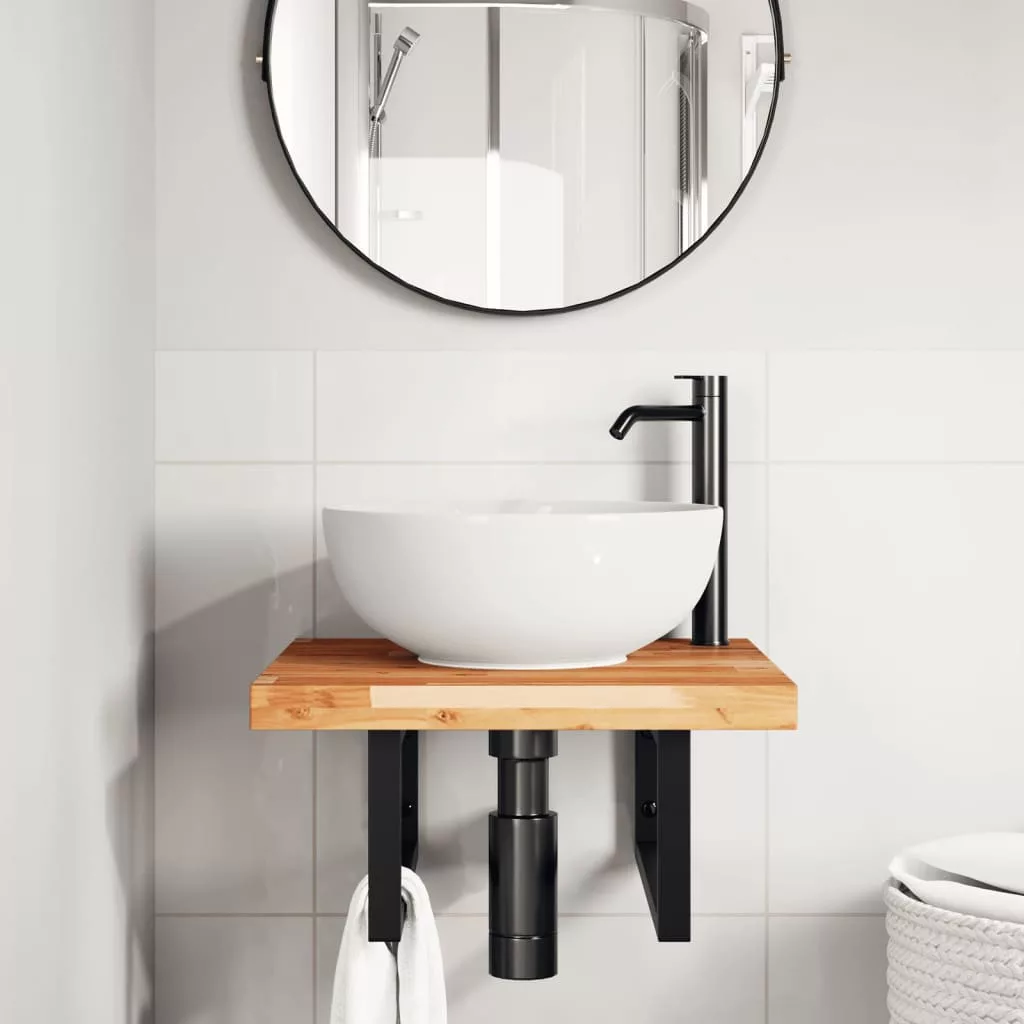 acél és tömör akácfa falra szerelhető mosdópolc