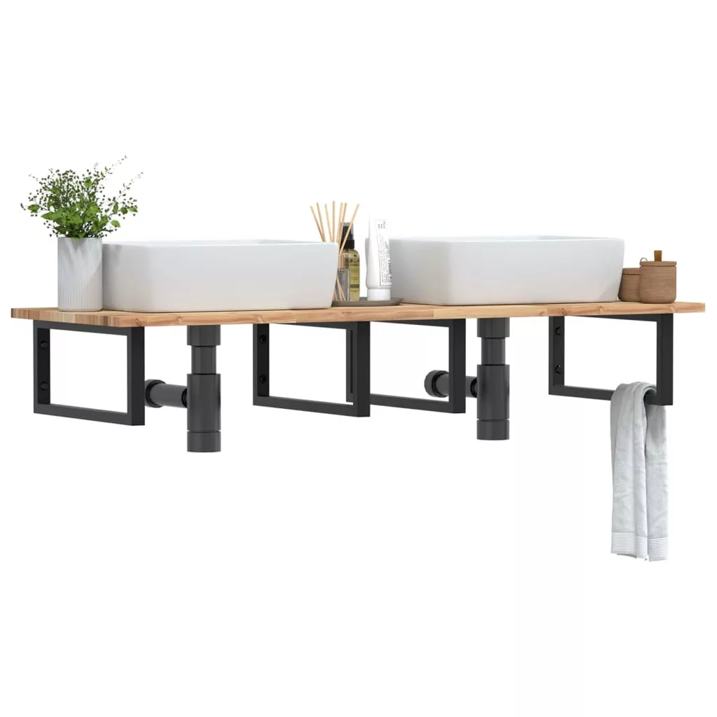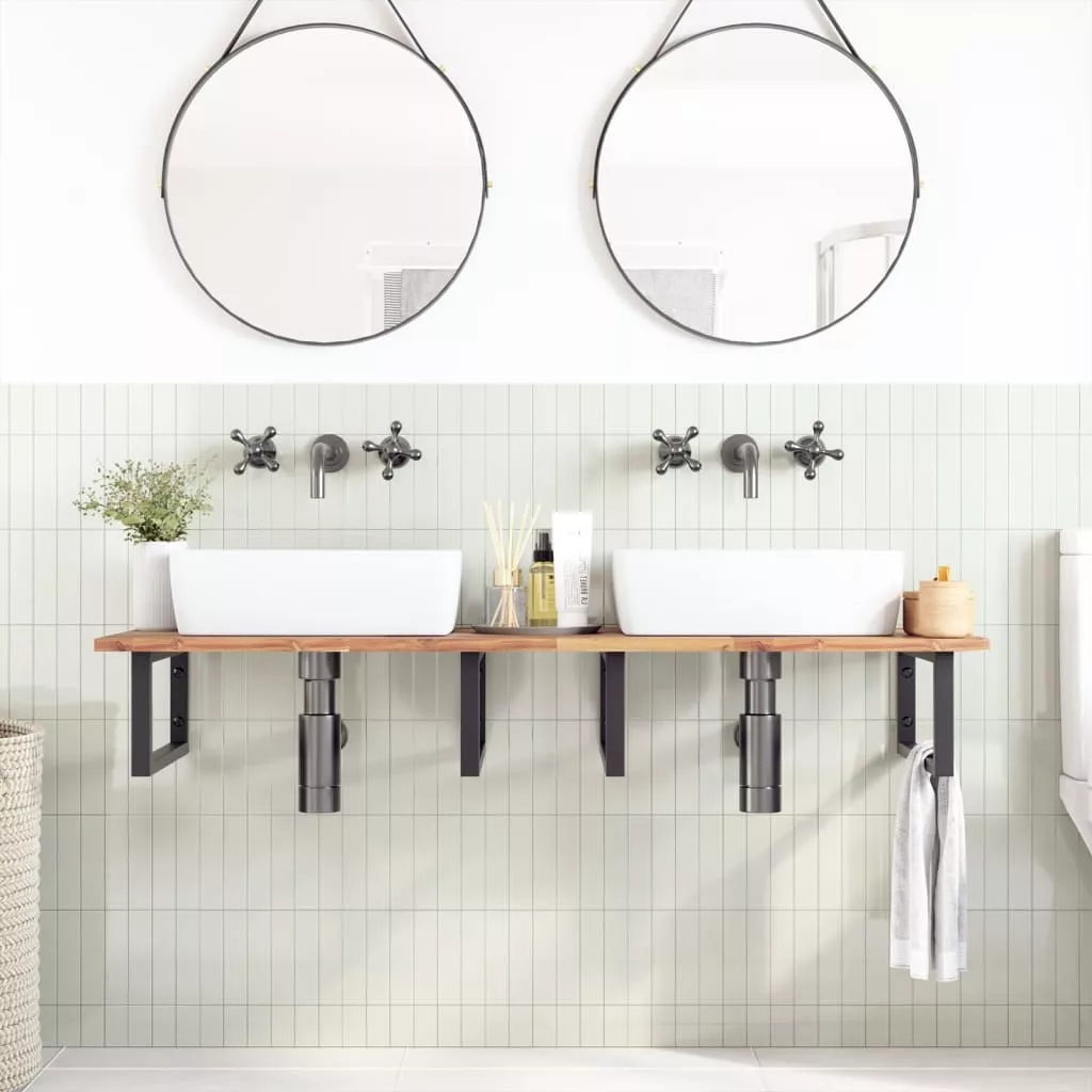 A falra szerelhető mosdópolc biztonságosan a falhoz rögzíthető, elegáns és helytakarékos megoldást nyújtva fürdőszobájának. Erős és tartós: Ez a mosdópolc acélszerkezettel és tömör akácfa lappal lett ellátva, így erős, stabil és hosszú élettartamú.Helytakarékos: A lebegő mosdókagylópolcon bőséges hely van krémek és apróbb tárgyak tárolására. A téglalap alakú formának köszönhetően törölközőket vagy egyéb dolgokat akaszthat a tartóra, hogy helyet takarítson meg.Könnyen használható: A munkalap fúratlan, így a mosdó balra, jobbra vagy középre szerelhető, a helyiség igényeitől függően. A tartóba előre fúrt furatoknak köszönhetően könnyen összeszerelhető az asztallappal és a falra szerelhető.Széleskörű felhasználási terület: Modern kialakításának köszönhetően további helyet biztosít különféle típusú fürdőszobáknak. Jó tudni:A csavarokat nem tartalmazza, a csavarokat megvásárolhatja külön az alábbi információk alapján.Fali rögzítés: konzolonként 2 db M8 feszítőcsavarFa lap: 2 db M5x18 csavar (T=2) vagy 2 db M5x20 csavar (T=2,5/4cm) konzolonként