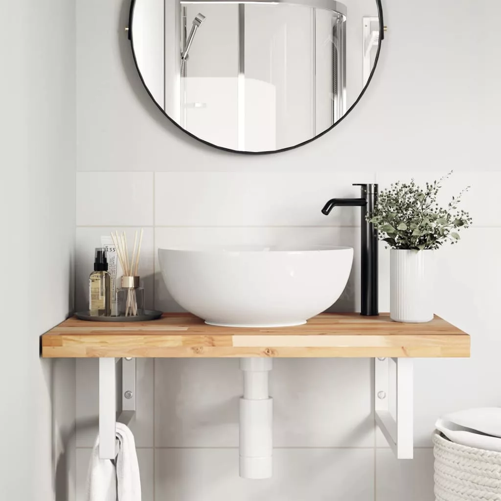 A falra szerelhető mosdópolc biztonságosan a falhoz rögzíthető, elegáns és helytakarékos megoldást nyújtva fürdőszobájának. Erős és tartós: Ez a mosdópolc acélszerkezettel és tömör akácfa lappal lett ellátva, így erős, stabil és hosszú élettartamú.Helytakarékos: A lebegő mosdókagylópolcon bőséges hely van krémek és apróbb tárgyak tárolására. A téglalap alakú formának köszönhetően törölközőket vagy egyéb dolgokat akaszthat a tartóra, hogy helyet takarítson meg.Könnyen használható: A munkalap fúratlan, így a mosdó balra, jobbra vagy középre szerelhető, a helyiség igényeitől függően. A tartóba előre fúrt furatoknak köszönhetően könnyen összeszerelhető az asztallappal és a falra szerelhető.Széleskörű felhasználási terület: Modern kialakításának köszönhetően további helyet biztosít különféle típusú fürdőszobáknak. Jó tudni:A csavarokat nem tartalmazza, a csavarokat megvásárolhatja külön az alábbi információk alapján.Fali rögzítés: konzolonként 2 db M8 feszítőcsavarFa lap: 2 db M5x18 csavar (T=2) vagy 2 db M5x20 csavar (T=2,5/4cm) konzolonként