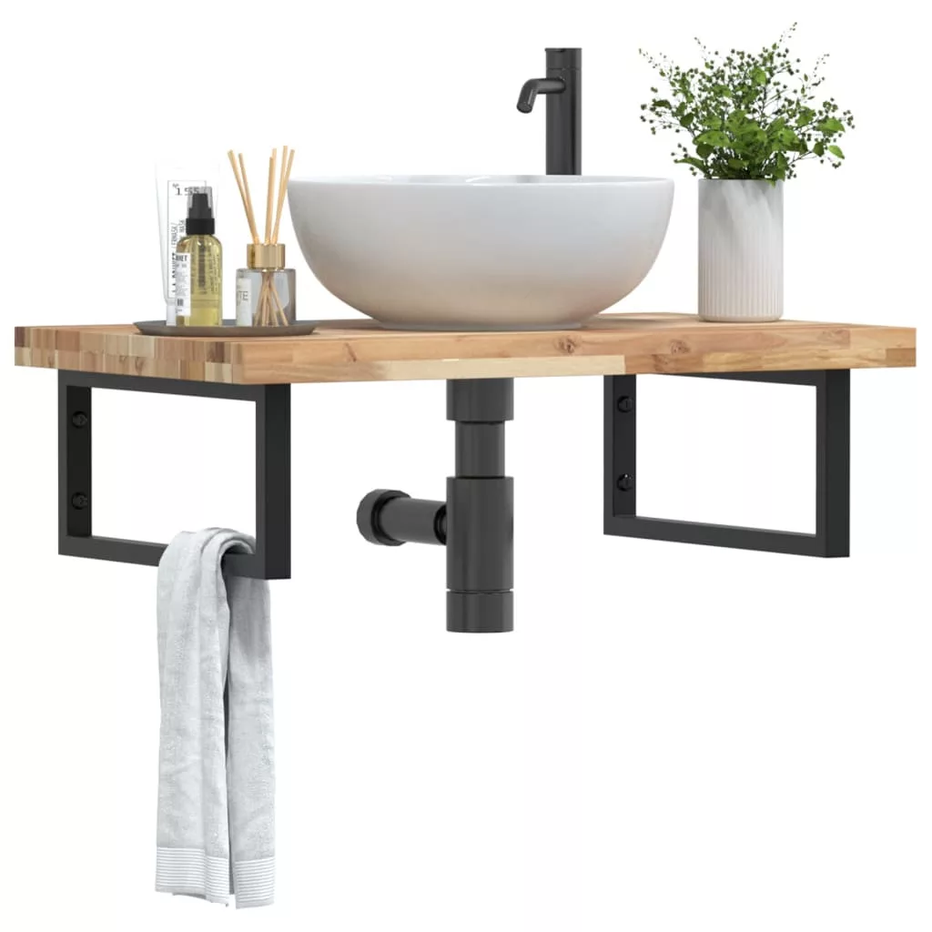 A falra szerelhető mosdópolc biztonságosan a falhoz rögzíthető, elegáns és helytakarékos megoldást nyújtva fürdőszobájának. Erős és tartós: Ez a mosdópolc acélszerkezettel és tömör akácfa lappal lett ellátva, így erős, stabil és hosszú élettartamú.Helytakarékos: A lebegő mosdókagylópolcon bőséges hely van krémek és apróbb tárgyak tárolására. A téglalap alakú formának köszönhetően törölközőket vagy egyéb dolgokat akaszthat a tartóra, hogy helyet takarítson meg.Könnyen használható: A munkalap fúratlan, így a mosdó balra, jobbra vagy középre szerelhető, a helyiség igényeitől függően. A tartóba előre fúrt furatoknak köszönhetően könnyen összeszerelhető az asztallappal és a falra szerelhető.Széleskörű felhasználási terület: Modern kialakításának köszönhetően további helyet biztosít különféle típusú fürdőszobáknak. Jó tudni:A csavarokat nem tartalmazza, a csavarokat megvásárolhatja külön az alábbi információk alapján.Fali rögzítés: konzolonként 2 db M8 feszítőcsavarFa lap: 2 db M5x18 csavar (T=2) vagy 2 db M5x20 csavar (T=2,5/4cm) konzolonként
