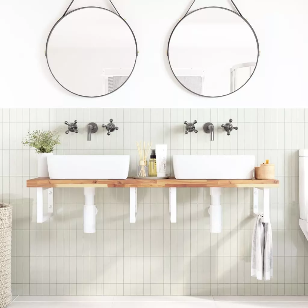 A falra szerelhető mosdópolc biztonságosan a falhoz rögzíthető, elegáns és helytakarékos megoldást nyújtva fürdőszobájának. Erős és tartós: Ez a mosdópolc acélszerkezettel és tömör akácfa lappal lett ellátva, így erős, stabil és hosszú élettartamú.Helytakarékos: A lebegő mosdókagylópolcon bőséges hely van krémek és apróbb tárgyak tárolására. A téglalap alakú formának köszönhetően törölközőket vagy egyéb dolgokat akaszthat a tartóra, hogy helyet takarítson meg.Könnyen használható: A munkalap fúratlan, így a mosdó balra, jobbra vagy középre szerelhető, a helyiség igényeitől függően. A tartóba előre fúrt furatoknak köszönhetően könnyen összeszerelhető az asztallappal és a falra szerelhető.Széleskörű felhasználási terület: Modern kialakításának köszönhetően további helyet biztosít különféle típusú fürdőszobáknak. Jó tudni:A csavarokat nem tartalmazza, a csavarokat megvásárolhatja külön az alábbi információk alapján.Fali rögzítés: konzolonként 2 db M8 feszítőcsavarFa lap: 2 db M5x18 csavar (T=2) vagy 2 db M5x20 csavar (T=2,5/4cm) konzolonként