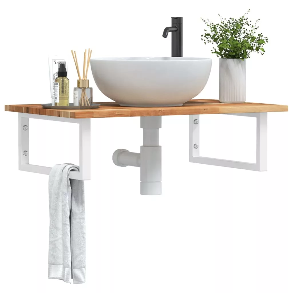 acél és tömör akácfa falra szerelhető mosdópolc