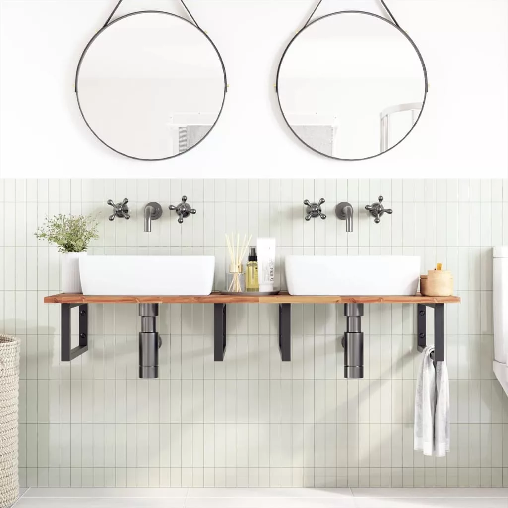 acél és tömör akácfa falra szerelhető mosdópolc