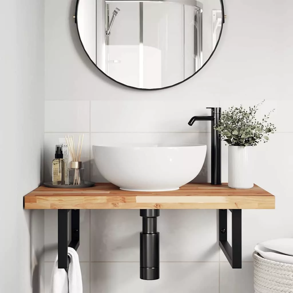 A falra szerelhető mosdópolc biztonságosan a falhoz rögzíthető, elegáns és helytakarékos megoldást nyújtva fürdőszobájának. Erős és tartós: Ez a mosdópolc acélszerkezettel és tömör akácfa lappal lett ellátva, így erős, stabil és hosszú élettartamú.Helytakarékos: A lebegő mosdókagylópolcon bőséges hely van krémek és apróbb tárgyak tárolására. A téglalap alakú formának köszönhetően törölközőket vagy egyéb dolgokat akaszthat a tartóra, hogy helyet takarítson meg.Könnyen használható: A munkalap fúratlan, így a mosdó balra, jobbra vagy középre szerelhető, a helyiség igényeitől függően. A tartóba előre fúrt furatoknak köszönhetően könnyen összeszerelhető az asztallappal és a falra szerelhető.Széleskörű felhasználási terület: Modern kialakításának köszönhetően további helyet biztosít különféle típusú fürdőszobáknak. Jó tudni:A csavarokat nem tartalmazza, a csavarokat megvásárolhatja külön az alábbi információk alapján.Fali rögzítés: konzolonként 2 db M8 feszítőcsavarFa lap: 2 db M5x18 csavar (T=2) vagy 2 db M5x20 csavar (T=2,5/4cm) konzolonként