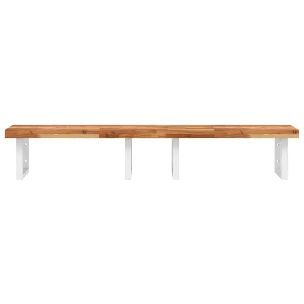 A falra szerelhető mosdópolc biztonságosan a falhoz rögzíthető, elegáns és helytakarékos megoldást nyújtva fürdőszobájának. Erős és tartós: Ez a mosdópolc acélszerkezettel és tömör akácfa lappal lett ellátva, így erős, stabil és hosszú élettartamú.Helytakarékos: A lebegő mosdókagylópolcon bőséges hely van krémek és apróbb tárgyak tárolására. A téglalap alakú formának köszönhetően törölközőket vagy egyéb dolgokat akaszthat a tartóra, hogy helyet takarítson meg.Könnyen használható: A munkalap fúratlan, így a mosdó balra, jobbra vagy középre szerelhető, a helyiség igényeitől függően. A tartóba előre fúrt furatoknak köszönhetően könnyen összeszerelhető az asztallappal és a falra szerelhető.Széleskörű felhasználási terület: Modern kialakításának köszönhetően további helyet biztosít különféle típusú fürdőszobáknak. Jó tudni:A csavarokat nem tartalmazza, a csavarokat megvásárolhatja külön az alábbi információk alapján.Fali rögzítés: konzolonként 2 db M8 feszítőcsavarFa lap: 2 db M5x18 csavar (T=2) vagy 2 db M5x20 csavar (T=2,5/4cm) konzolonként
