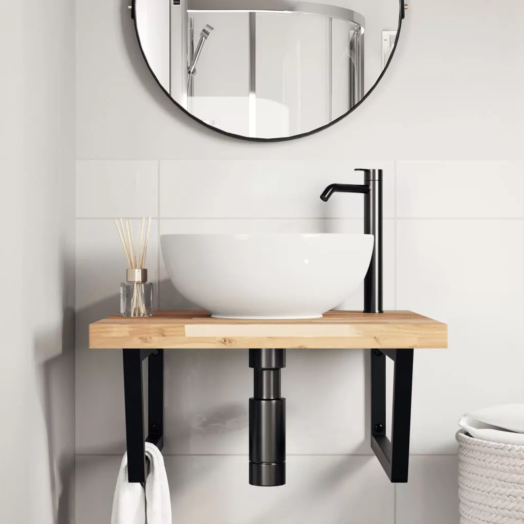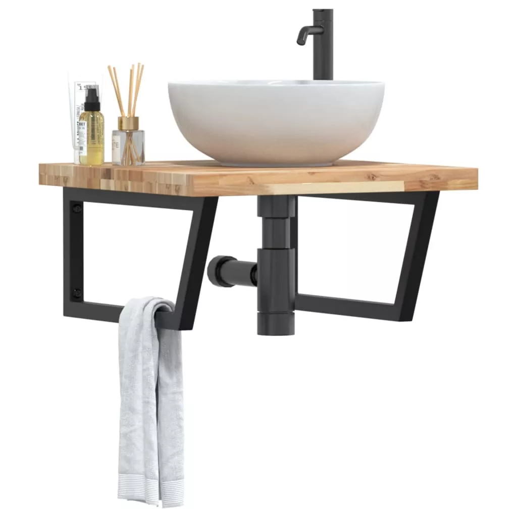 A falra szerelhető mosdópolc biztonságosan a falhoz rögzíthető, elegáns és helytakarékos megoldást nyújtva fürdőszobájának. Erős és tartós: Ez a mosdópolc acélszerkezettel és tömör akácfa lappal lett ellátva, így erős, stabil és hosszú élettartamú.Helytakarékos: A függő mosdókagylópolc bőséges helyet kínál krémek és apróbb tárgyak tárolására. A trapéz alakú formának köszönhetően törölközőket vagy egyéb dolgokat akaszthat a tartóra, hogy helyet takarítson meg.Könnyen használható: A munkalap fúratlan, így a mosdó balra, jobbra vagy középre szerelhető, a helyiség igényeitől függően. A tartóba előre fúrt furatoknak köszönhetően könnyen összeszerelhető az asztallappal és a falra szerelhető.Széleskörű felhasználási terület: Modern kialakításának köszönhetően további helyet biztosít különféle típusú fürdőszobáknak. Jó tudni:A csavarokat nem tartalmazza, a csavarokat megvásárolhatja külön az alábbi információk alapján.Fali rögzítés: konzolonként 2 db M8 feszítőcsavarFa lap: 2 db M5x18 csavar (T=2) vagy 2 db M5x20 csavar (T=2,5/4cm) konzolonként
