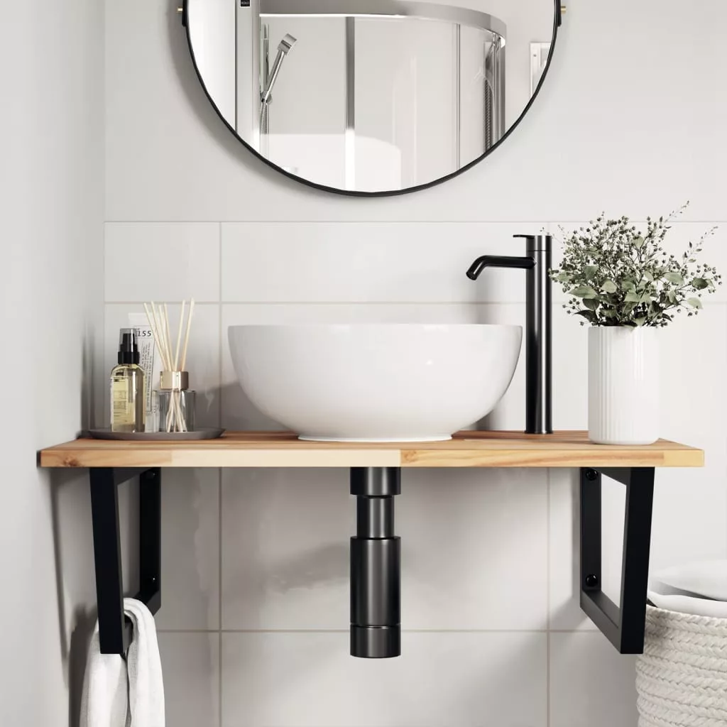 A falra szerelhető mosdópolc biztonságosan a falhoz rögzíthető, elegáns és helytakarékos megoldást nyújtva fürdőszobájának. Erős és tartós: Ez a mosdópolc acélszerkezettel és tömör akácfa lappal lett ellátva, így erős, stabil és hosszú élettartamú.Helytakarékos: A függő mosdókagylópolc bőséges helyet kínál krémek és apróbb tárgyak tárolására. A trapéz alakú formának köszönhetően törölközőket vagy egyéb dolgokat akaszthat a tartóra, hogy helyet takarítson meg.Könnyen használható: A munkalap fúratlan, így a mosdó balra, jobbra vagy középre szerelhető, a helyiség igényeitől függően. A tartóba előre fúrt furatoknak köszönhetően könnyen összeszerelhető az asztallappal és a falra szerelhető.Széleskörű felhasználási terület: Modern kialakításának köszönhetően további helyet biztosít különféle típusú fürdőszobáknak. Jó tudni:A csavarokat nem tartalmazza, a csavarokat megvásárolhatja külön az alábbi információk alapján.Fali rögzítés: konzolonként 2 db M8 feszítőcsavarFa lap: 2 db M5x18 csavar (T=2) vagy 2 db M5x20 csavar (T=2,5/4cm) konzolonként