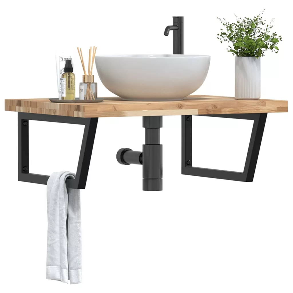 acél és tömör akácfa falra szerelhető mosdópolc