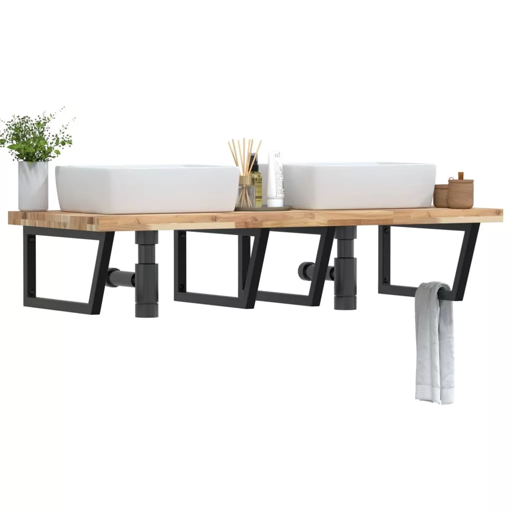 A falra szerelhető mosdópolc biztonságosan a falhoz rögzíthető, elegáns és helytakarékos megoldást nyújtva fürdőszobájának. Erős és tartós: Ez a mosdópolc acélszerkezettel és tömör akácfa lappal lett ellátva, így erős, stabil és hosszú élettartamú.Helytakarékos: A függő mosdókagylópolc bőséges helyet kínál krémek és apróbb tárgyak tárolására. A trapéz alakú formának köszönhetően törölközőket vagy egyéb dolgokat akaszthat a tartóra, hogy helyet takarítson meg.Könnyen használható: A munkalap fúratlan, így a mosdó balra, jobbra vagy középre szerelhető, a helyiség igényeitől függően. A tartóba előre fúrt furatoknak köszönhetően könnyen összeszerelhető az asztallappal és a falra szerelhető.Széleskörű felhasználási terület: Modern kialakításának köszönhetően további helyet biztosít különféle típusú fürdőszobáknak. Jó tudni:A csavarokat nem tartalmazza, a csavarokat megvásárolhatja külön az alábbi információk alapján.Fali rögzítés: konzolonként 2 db M8 feszítőcsavarFa lap: 2 db M5x18 csavar (T=2) vagy 2 db M5x20 csavar (T=2,5/4cm) konzolonként