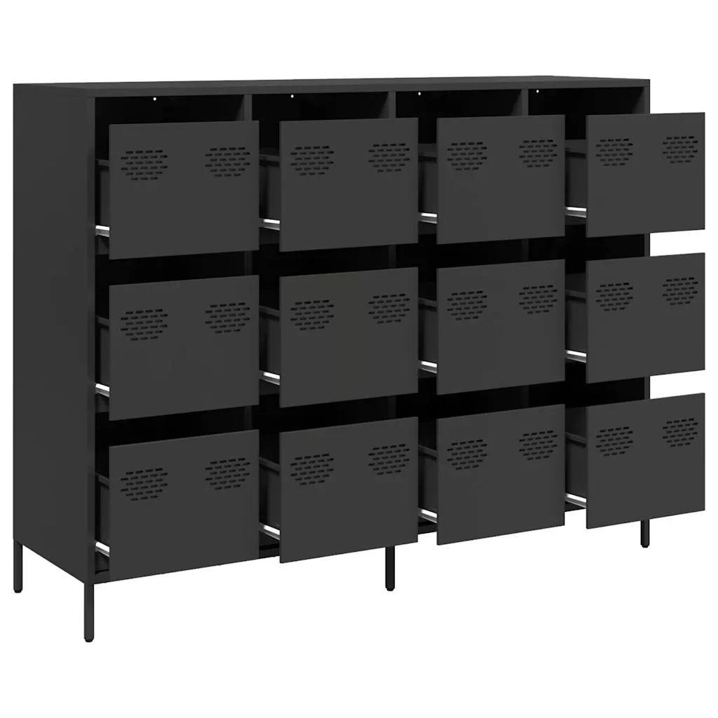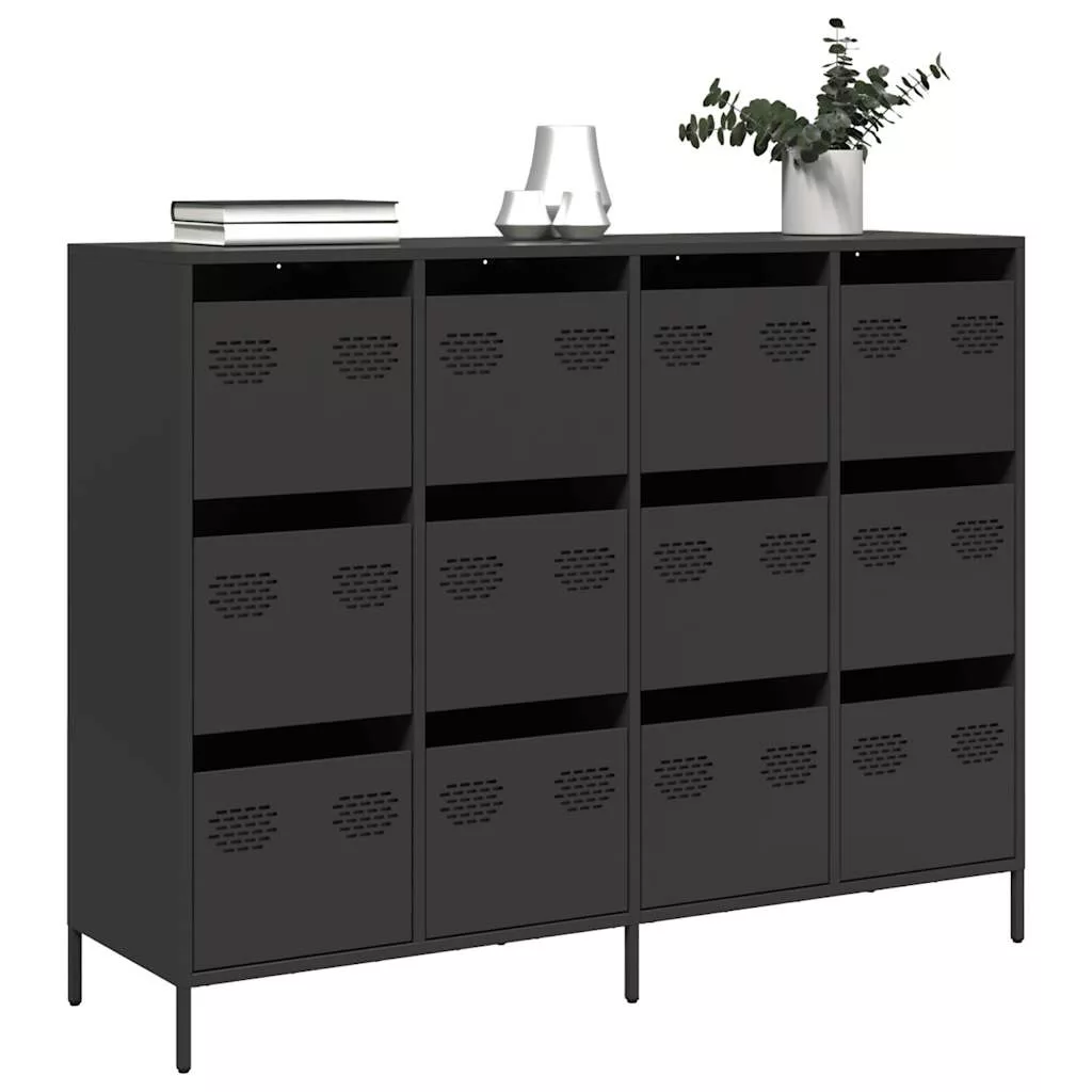 fekete hidegen hengerelt acél tálalószekrény 135x39x103,5 cm