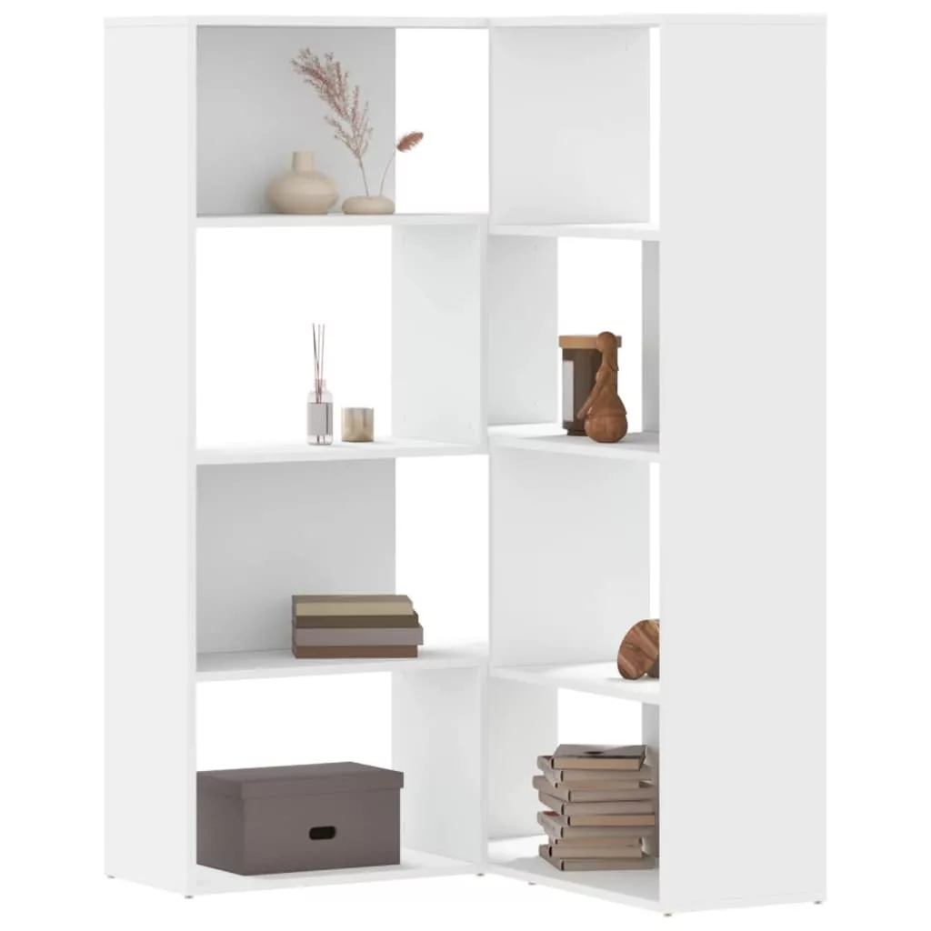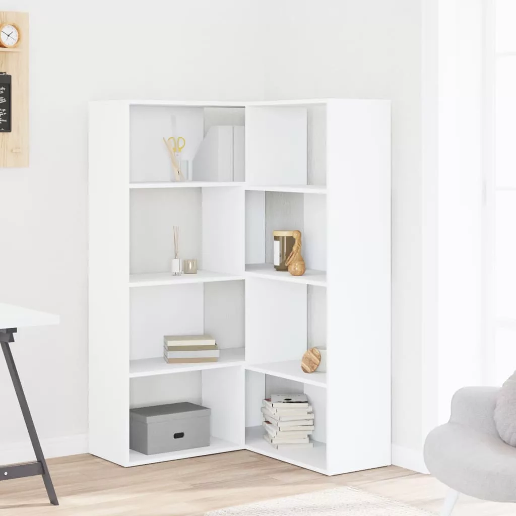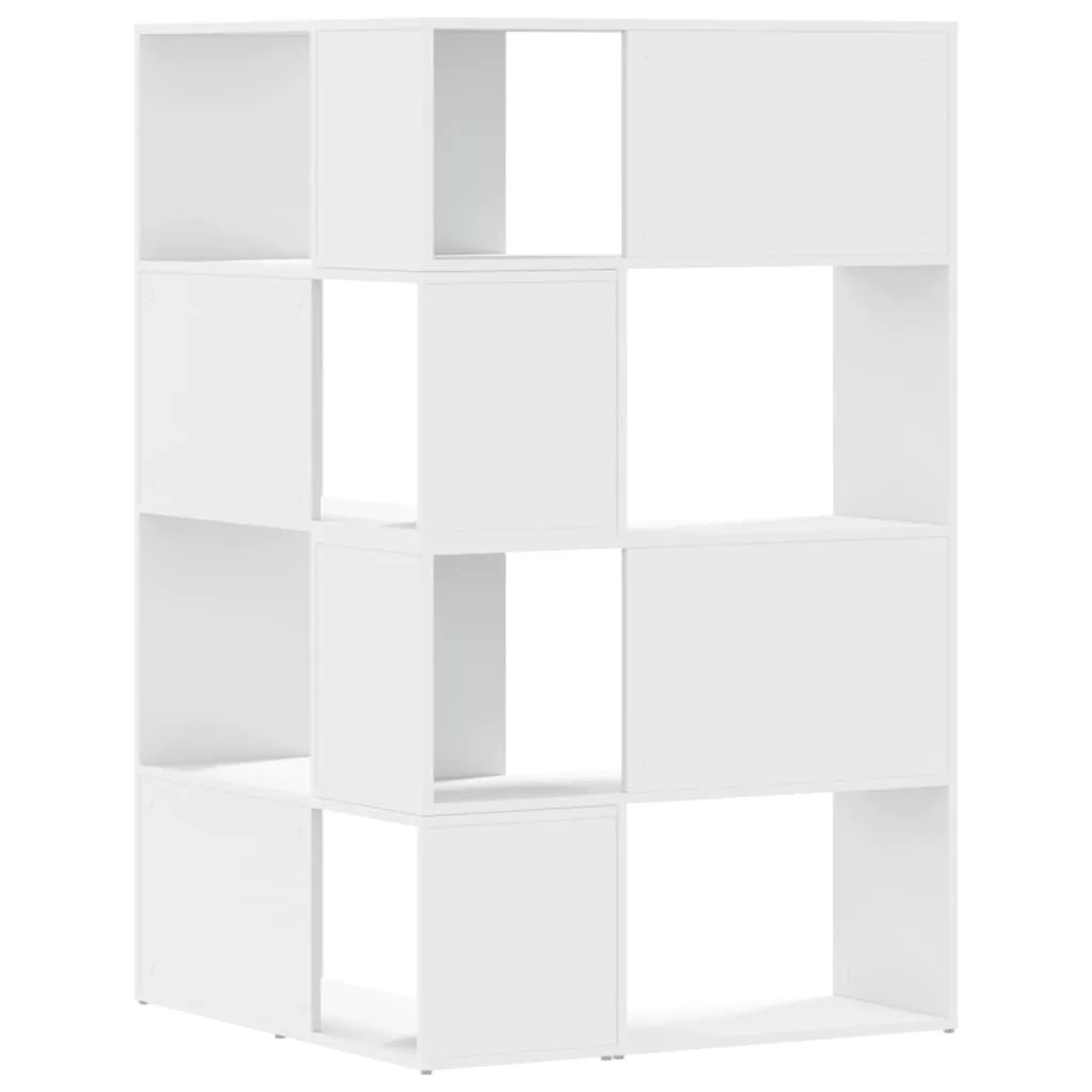 4 szintes fehér szerelt fa sarok könyvespolc 85 x 85 x 140 cm