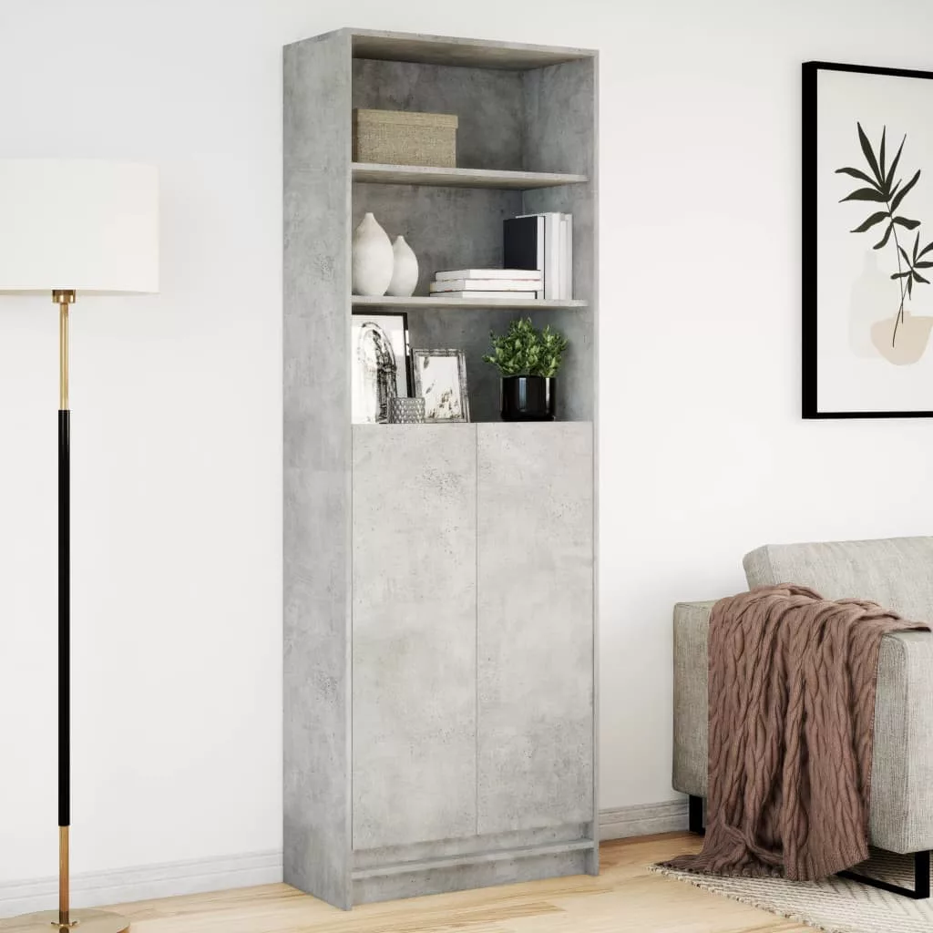 betonszürke szerelt fa magasszekrény LED-ekkel 69x32,5x200 cm