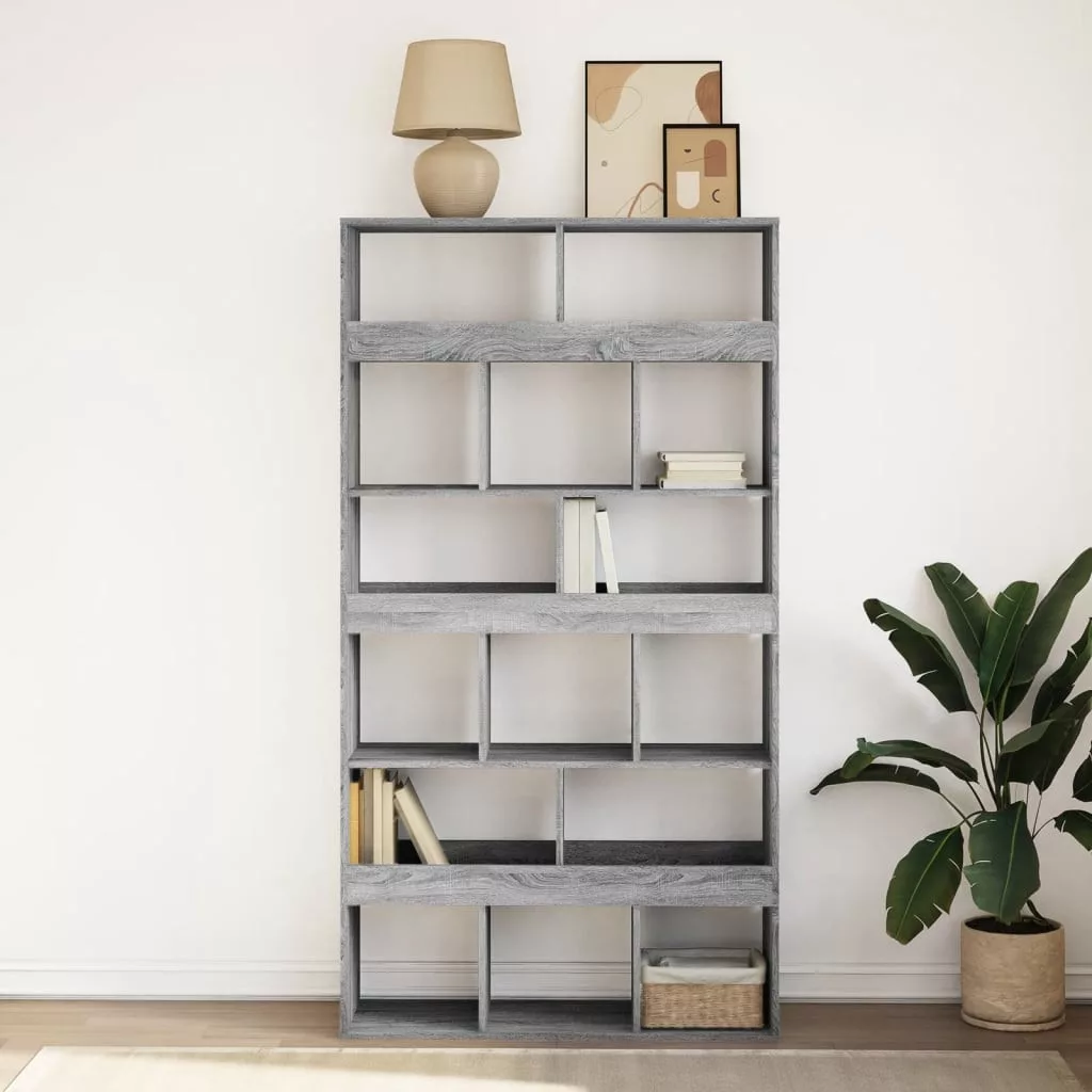 szürke sonoma színű szerelt fa könyvespolc 100 x 33 x 187,5 cm