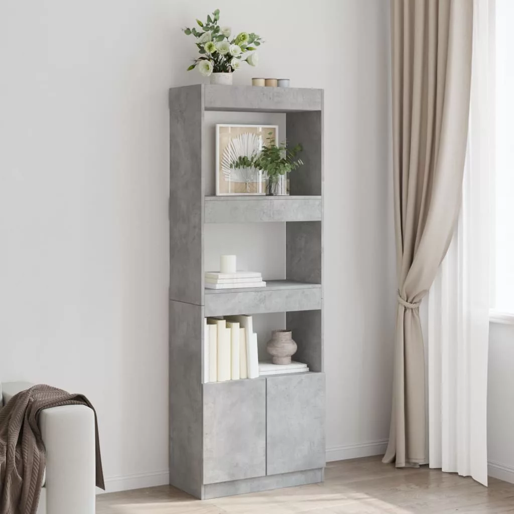 betonszürke szerelt fa magasszekrény 63 x 33 x 180 cm