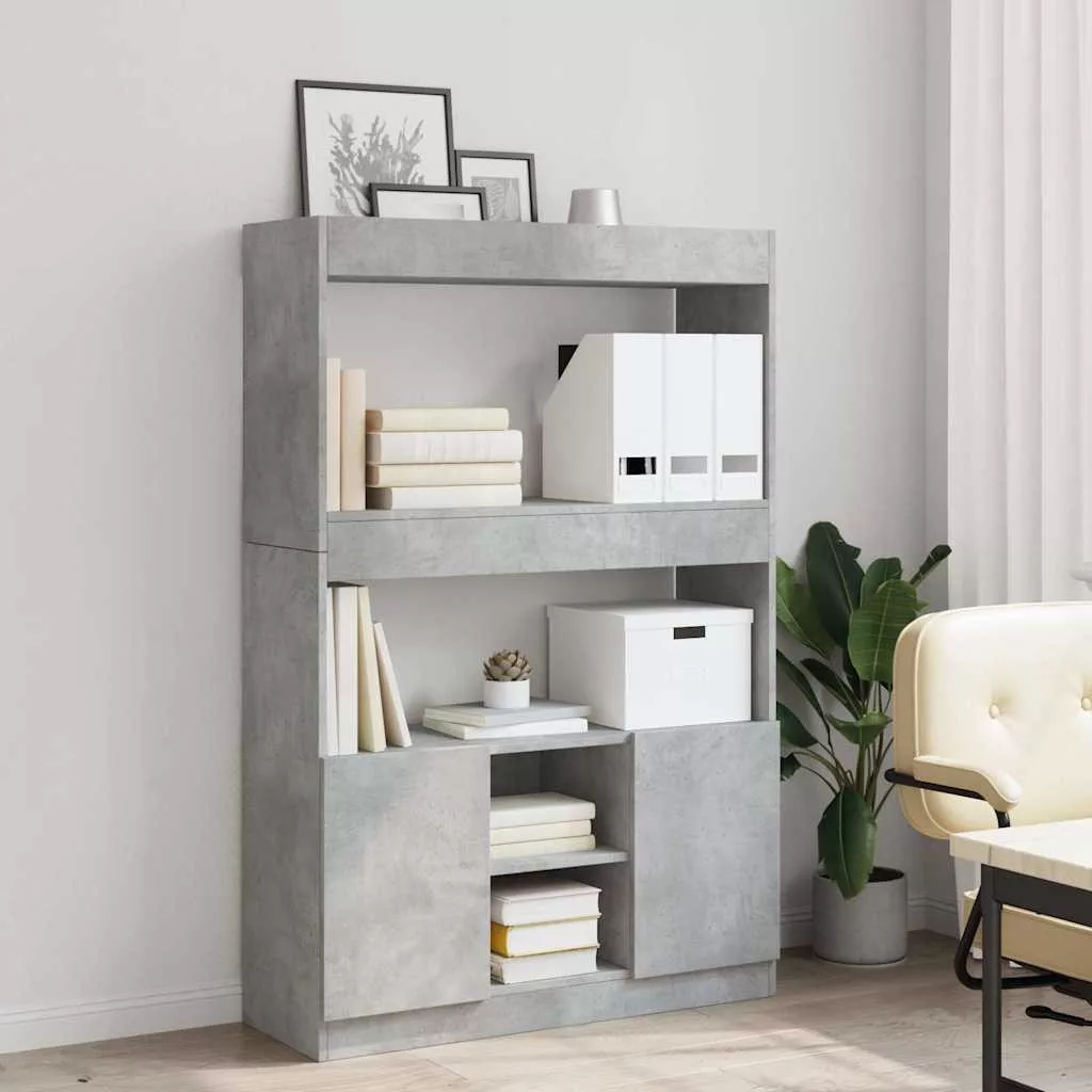 betonszürke szerelt fa magasszekrény 92 x 33 x 140 cm