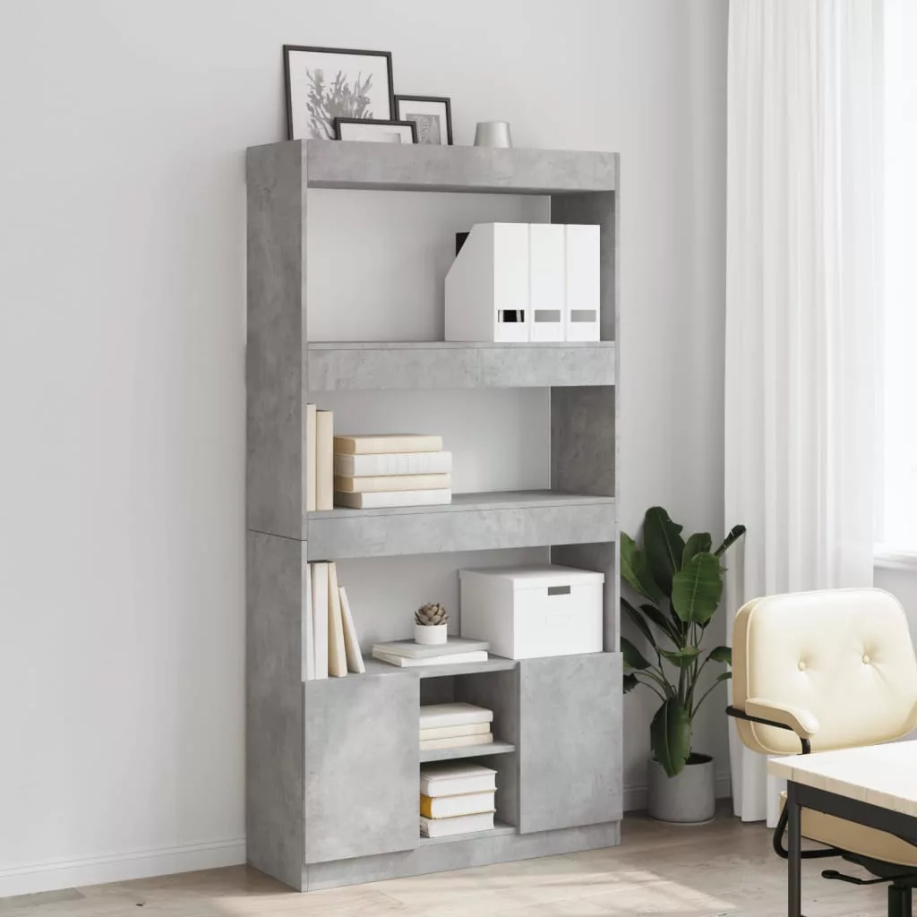 betonszürke szerelt fa magasszekrény 92 x 33 x 180 cm