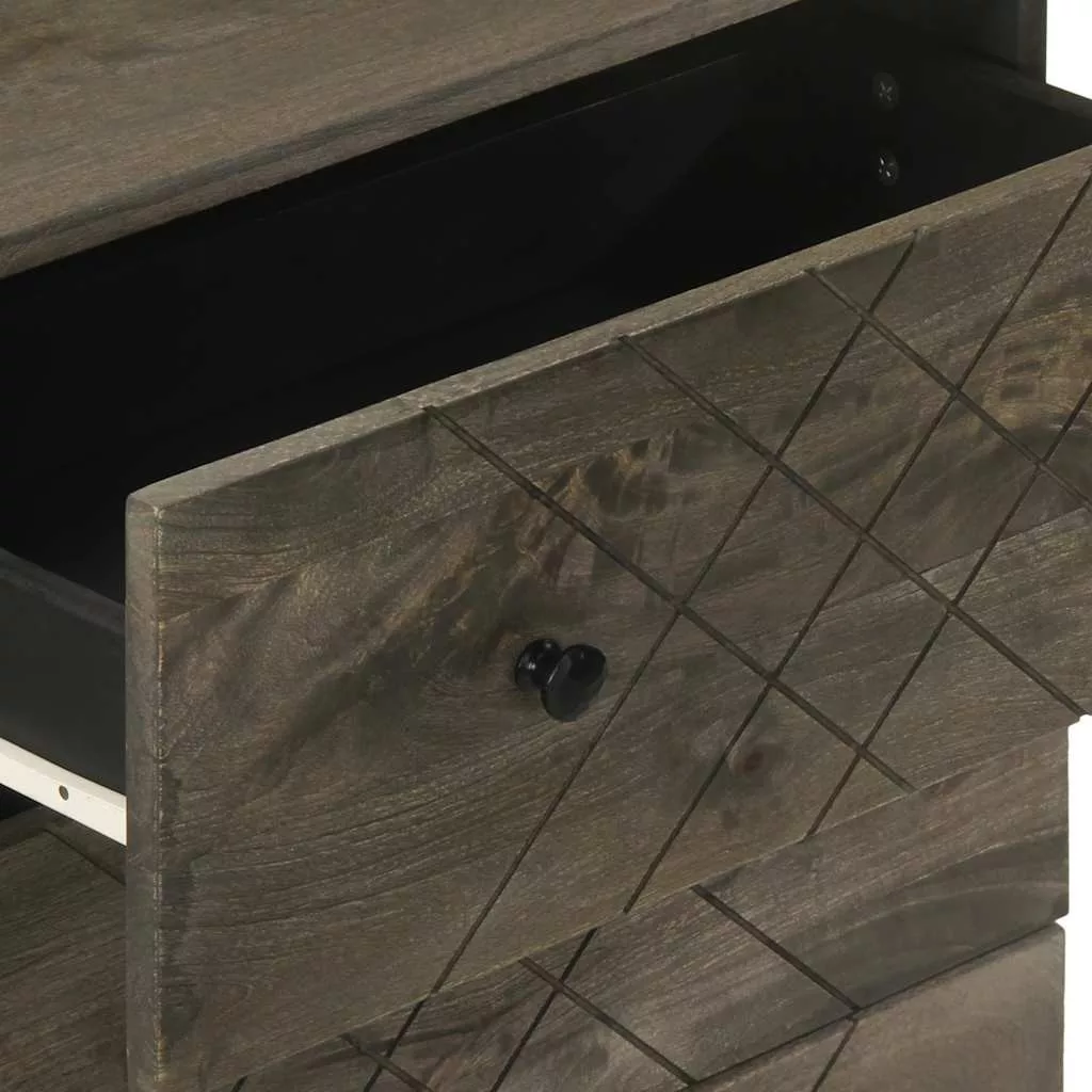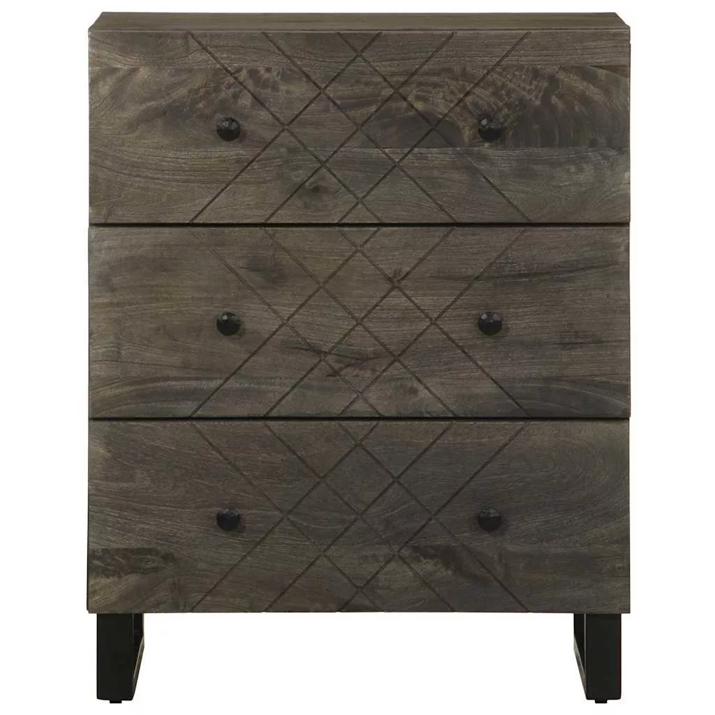 • Anyag: Masszív mangófa, szürke felületű, szanblasting megjelenéssel, műfa, fém.