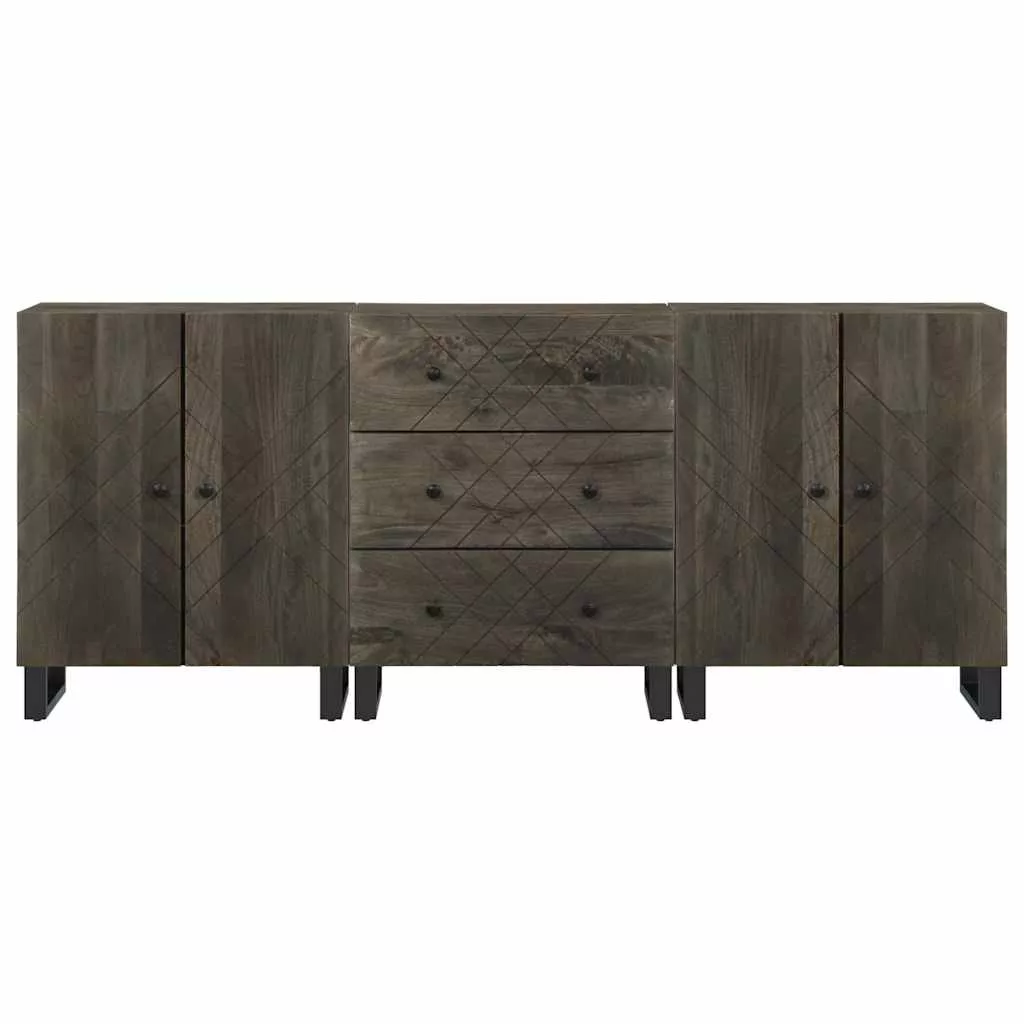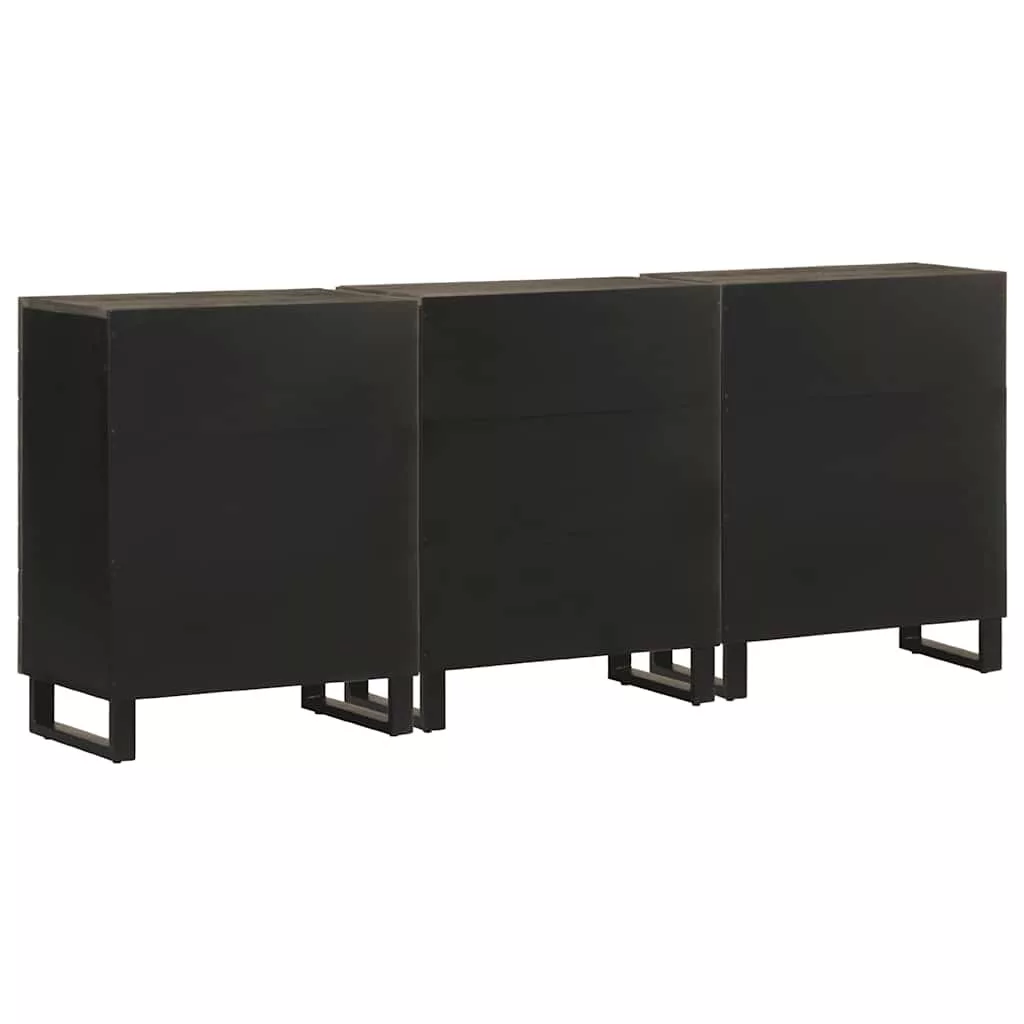 3 db-os komódok fekete 60x33x75 cm tömör fa mangó