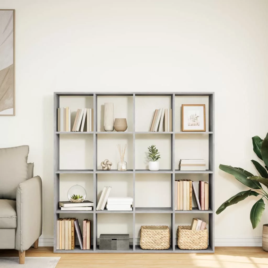 betonszürke szerelt fa könyvszekrény 137,5 x 29 x 137,5 cm