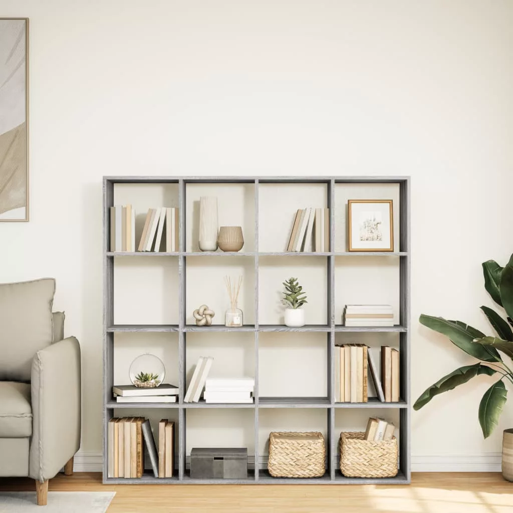 szürke sonoma színű szerelt fa könyvszekrény 137,5x29x137,5 cm