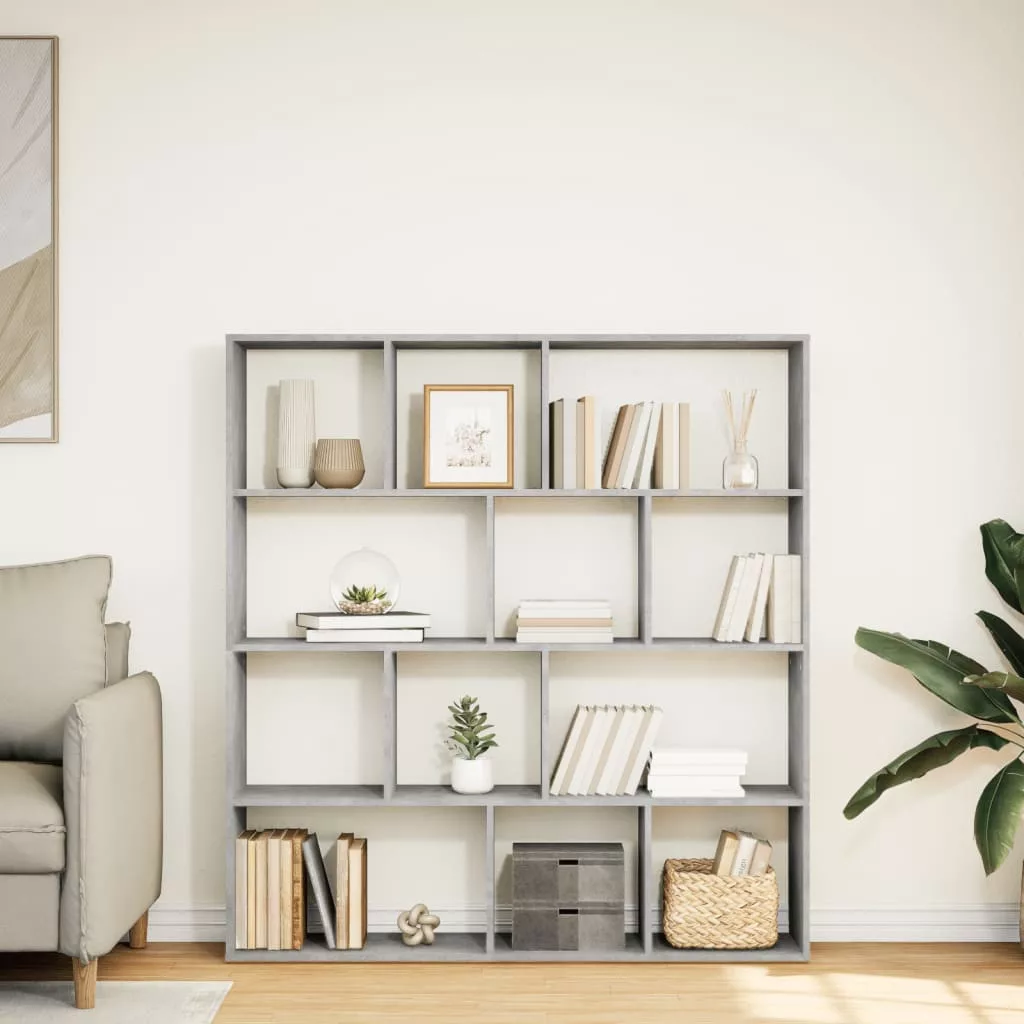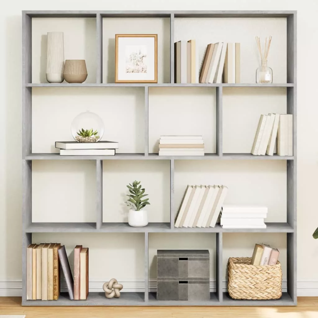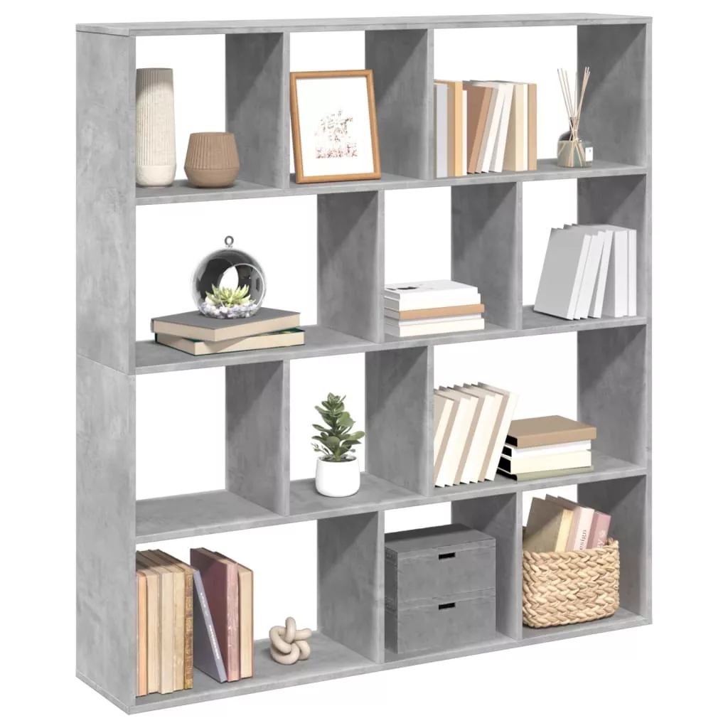 betonszürke szerelt fa könyvszekrény 132 x 29 x 141,5 cm