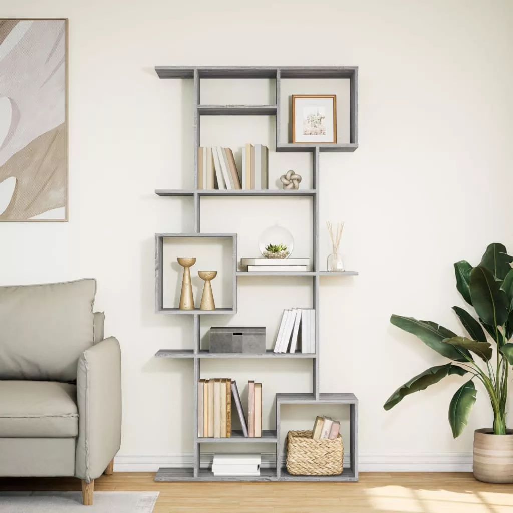 szürke sonoma színű szerelt fa könyvszekrény 92 x 29 x 188 cm