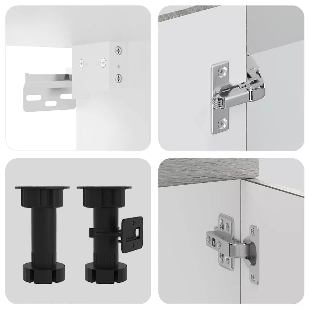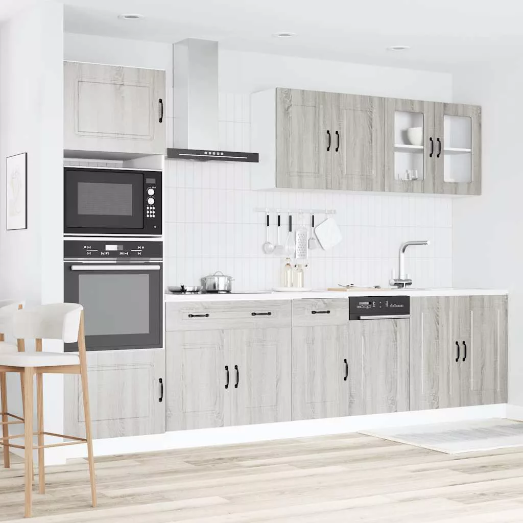 Ez az elegáns kialakítású, hétrészes konyhai szekrénygarnitúra optimalizálja konyhája terét, és bőséges tárolóhelyet biztosít személyes tárgyainak! Stabil és tartós anyag: A szerelt fa tartós és stabil anyag sima felülettel, amely ellenáll a nedvességnek, a vetemedésnek és a hasadásnak, így megbízható választás különféle célokhoz.Bőséges tárolóhely: A konyhaszekrénykészlet számos rekesszel rendelkezik, és elegendő helyet kínál tálak, tányérok, edények és egyéb konyhai eszközök tárolására.Állítható lábak: Az alsó szekrények állítható lábakkal rendelkeznek, amelyek magassága a konyha elrendezésének megfelelően állítható.Könnyen karbantartható: A sima felületnek köszönhetően ezek a konyhaszekrények könnyen tisztíthatók nedves ruhával, és kevesebb karbantartást igényelnek. Figyelem:A felborulás elkerülése érdekében ezt a terméket a mellékelt fali rögzítőeszközzel kell használni. Jó tudni:A falon belüli csavar(ok) és dugó(k) nem alaptartozékok. Keressen és használjon a falának megfelelő csavar(oka)t és dugó(ka)t. Ha bizonytalan, kérje szakember tanácsát. Gondosan olvassa el és kövesse a használati utasítás minden lépését.A munkalap, a mosogató és a csaptelep nem tartozéka a szállításnak.