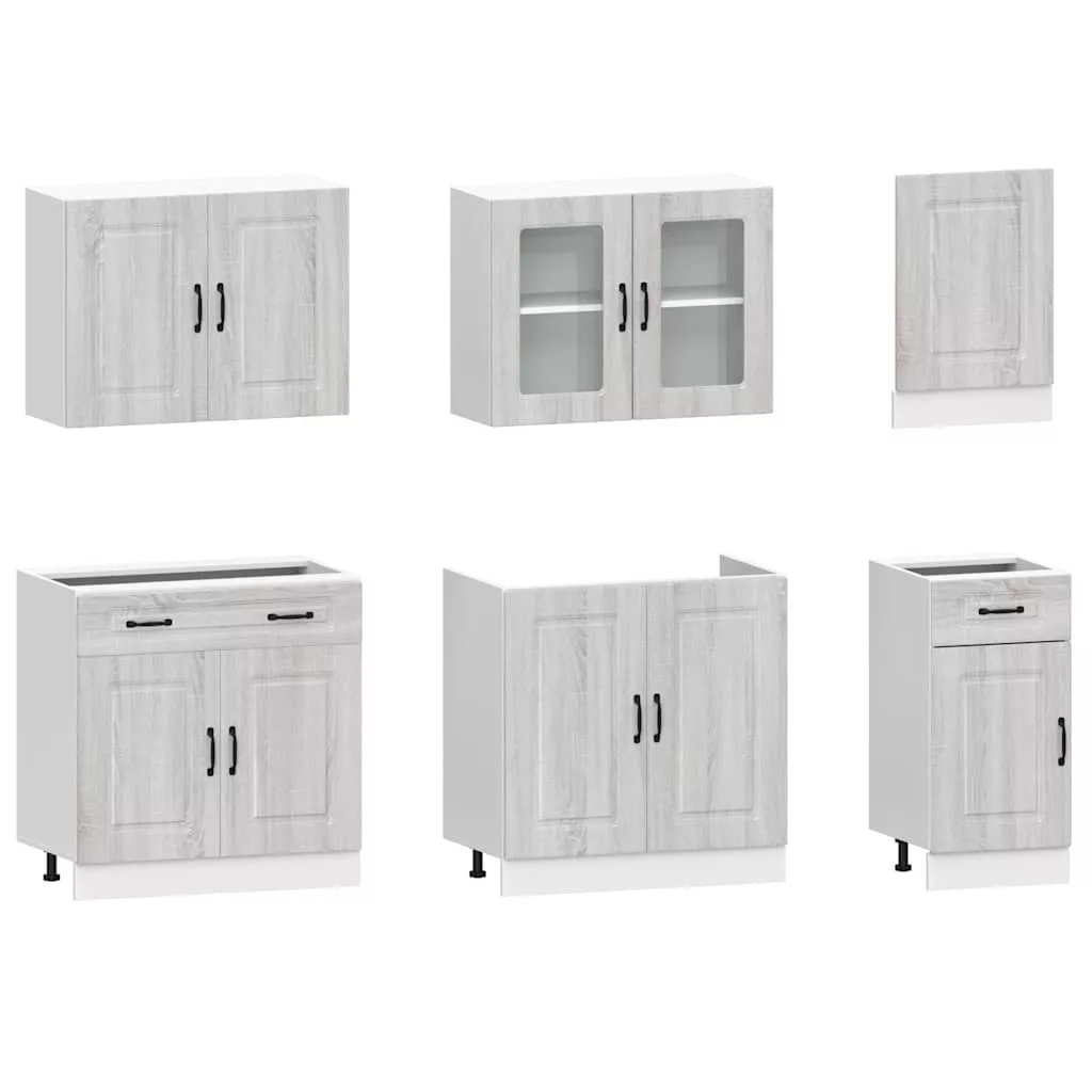 7 darabos konyhaszekrény szett Kalmar szürke sonoma műfa