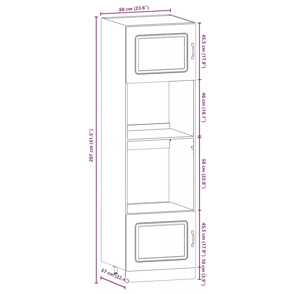 • 1 x konyhaszekrény: 60 x 57 x 207 cm (Sz x M x K)