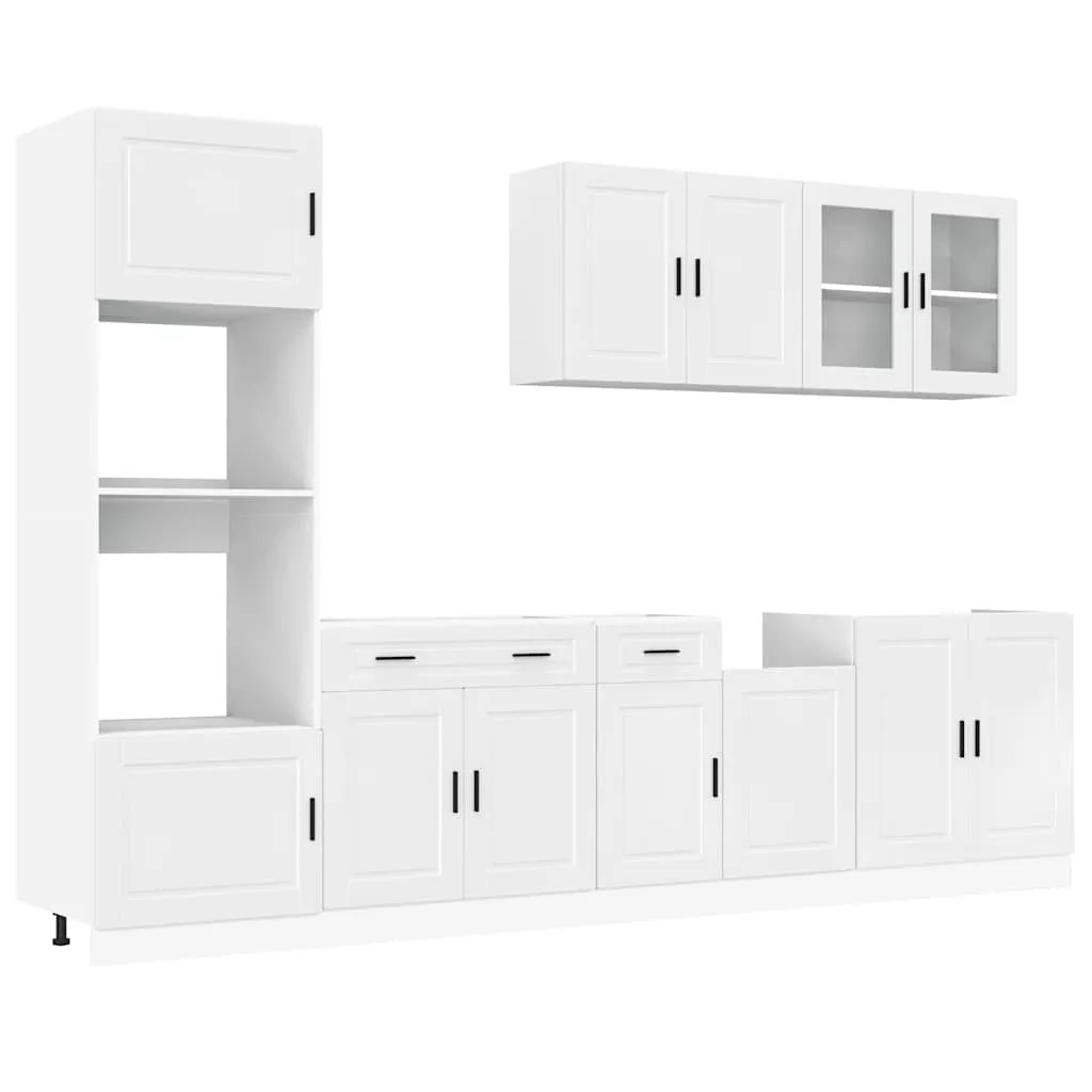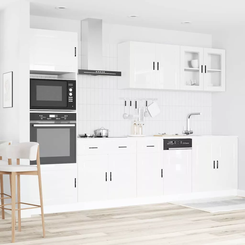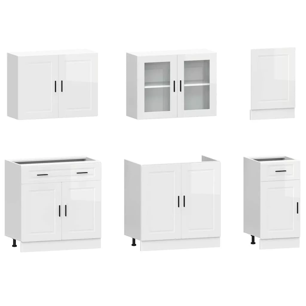 7 részes konyhai szekrény szett Kalmar fényes fehér műfa