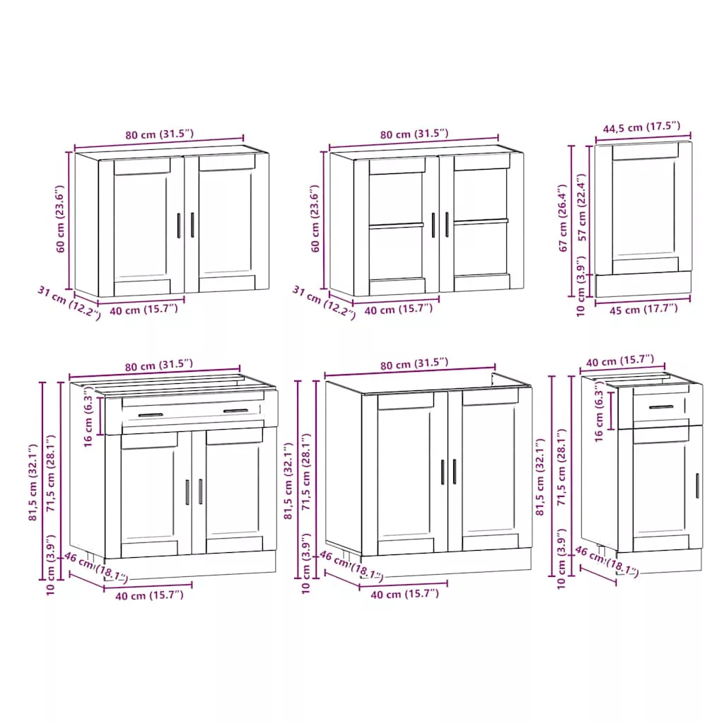Ez az elegáns kialakítású, hétrészes konyhai szekrénygarnitúra optimalizálja konyhája terét, és bőséges tárolóhelyet biztosít személyes tárgyainak! Stabil és tartós anyag: A szerelt fa tartós és stabil anyag sima felülettel, amely ellenáll a nedvességnek, a vetemedésnek és a hasadásnak, így megbízható választás különféle célokhoz.Bőséges tárolóhely: A konyhaszekrénykészlet számos rekesszel rendelkezik, és elegendő helyet kínál tálak, tányérok, edények és egyéb konyhai eszközök tárolására.Állítható lábak: Az alsó szekrények állítható lábakkal rendelkeznek, amelyek magassága a konyha elrendezésének megfelelően állítható.Könnyen karbantartható: A sima felületnek köszönhetően ezek a konyhaszekrények könnyen tisztíthatók nedves ruhával, és kevesebb karbantartást igényelnek. Figyelem:A felborulás elkerülése érdekében ezt a terméket a mellékelt fali rögzítőeszközzel kell használni. Jó tudni:A falon belüli csavar(ok) és dugó(k) nem alaptartozékok. Keressen és használjon a falának megfelelő csavar(oka)t és dugó(ka)t. Ha bizonytalan, kérje szakember tanácsát. Gondosan olvassa el és kövesse a használati utasítás minden lépését.A munkalap, a mosogató és a csaptelep nem tartozéka a szállításnak.