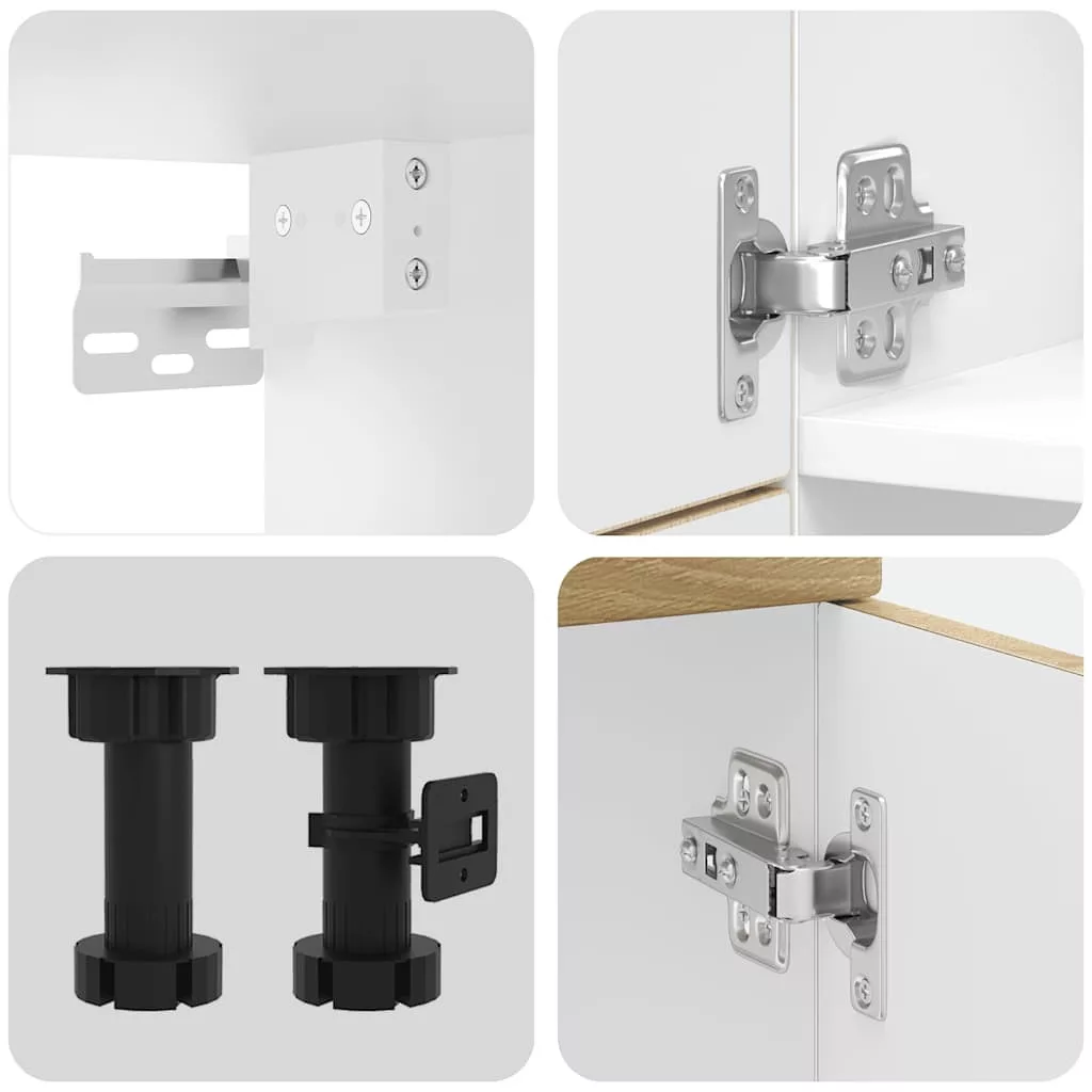Ez az elegáns kialakítású, hétrészes konyhai szekrénygarnitúra optimalizálja konyhája terét, és bőséges tárolóhelyet biztosít személyes tárgyainak! Stabil és tartós anyag: A szerelt fa tartós és stabil anyag sima felülettel, amely ellenáll a nedvességnek, a vetemedésnek és a hasadásnak, így megbízható választás különféle célokhoz.Bőséges tárolóhely: A konyhaszekrénykészlet számos rekesszel rendelkezik, és elegendő helyet kínál tálak, tányérok, edények és egyéb konyhai eszközök tárolására.Állítható lábak: Az alsó szekrények állítható lábakkal rendelkeznek, amelyek magassága a konyha elrendezésének megfelelően állítható.Könnyen karbantartható: A sima felületnek köszönhetően ezek a konyhaszekrények könnyen tisztíthatók nedves ruhával, és kevesebb karbantartást igényelnek. Figyelem:A felborulás elkerülése érdekében ezt a terméket a mellékelt fali rögzítőeszközzel kell használni. Jó tudni:A falon belüli csavar(ok) és dugó(k) nem alaptartozékok. Keressen és használjon a falának megfelelő csavar(oka)t és dugó(ka)t. Ha bizonytalan, kérje szakember tanácsát. Gondosan olvassa el és kövesse a használati utasítás minden lépését.A munkalap, a mosogató és a csaptelep nem tartozéka a szállításnak.