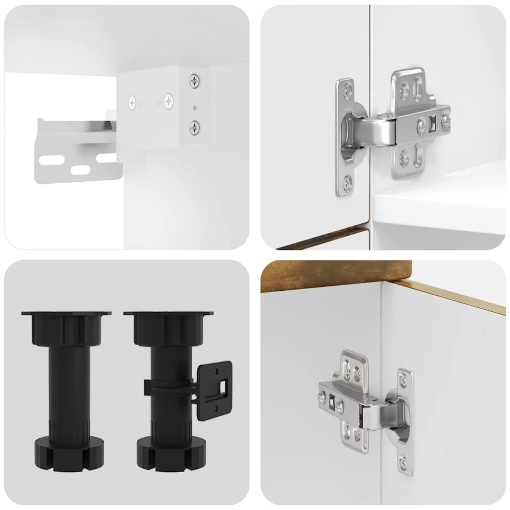 Ez az elegáns kialakítású, hétrészes konyhai szekrénygarnitúra optimalizálja konyhája terét, és bőséges tárolóhelyet biztosít személyes tárgyainak! Stabil és tartós anyag: A szerelt fa tartós és stabil anyag sima felülettel, amely ellenáll a nedvességnek, a vetemedésnek és a hasadásnak, így megbízható választás különféle célokhoz.Bőséges tárolóhely: A konyhaszekrénykészlet számos rekesszel rendelkezik, és elegendő helyet kínál tálak, tányérok, edények és egyéb konyhai eszközök tárolására.Állítható lábak: Az alsó szekrények állítható lábakkal rendelkeznek, amelyek magassága a konyha elrendezésének megfelelően állítható.Könnyen karbantartható: A sima felületnek köszönhetően ezek a konyhaszekrények könnyen tisztíthatók nedves ruhával, és kevesebb karbantartást igényelnek. Figyelem:A felborulás elkerülése érdekében ezt a terméket a mellékelt fali rögzítőeszközzel kell használni. Jó tudni:A falon belüli csavar(ok) és dugó(k) nem alaptartozékok. Keressen és használjon a falának megfelelő csavar(oka)t és dugó(ka)t. Ha bizonytalan, kérje szakember tanácsát. Gondosan olvassa el és kövesse a használati utasítás minden lépését.A munkalap, a mosogató és a csaptelep nem tartozéka a szállításnak.