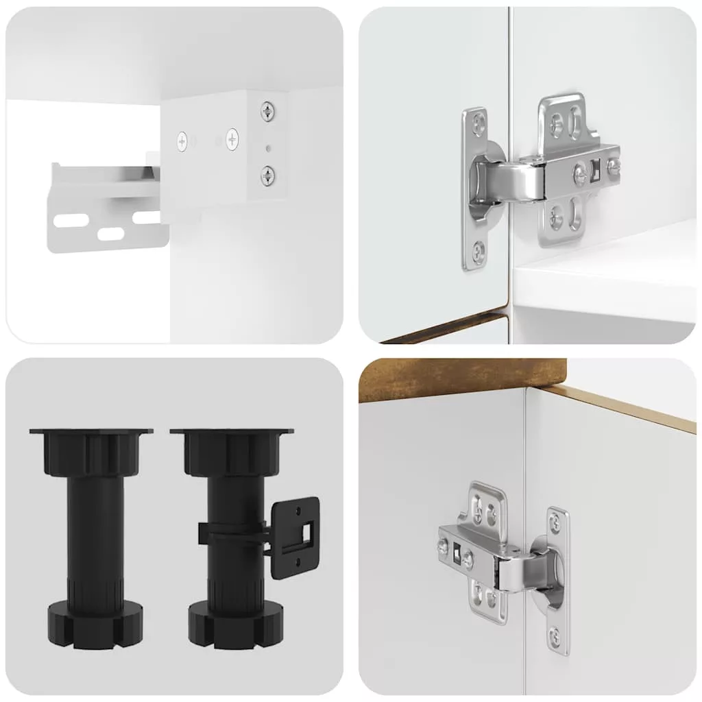 Ez a 7 darabos konyhaszekrény-garnitúra elegáns kialakításával optimalizálja a konyhateret, és bőséges tárolóhelyet biztosít személyes tárgyaidnak! Stabil és tartós anyag: A mesterséges fa tartós és stabil anyag, sima felülettel, amely ellenáll a nedvességnek, a vetemedésnek és a repedésnek, így megbízható választás számos projekthez.Bőséges tárolóhely: A konyhaszekrény-garnitúra számos rekesszel rendelkezik, és elegendő helyet kínál tálak, tányérok, edények és egyéb konyhai eszközök tárolására.Állítható lábak: Az alsó szekrények állítható lábakkal rendelkeznek, amelyek magassága a konyha elrendezéséhez igazítható.Könnyen karbantartható: Sima felületüknek köszönhetően ezek a konyhaszekrények könnyen tisztíthatók nedves ruhával, és kevesebb karbantartást igényelnek. Figyelmeztetés:A terméket munkalap beszerelésével kell rögzíteni. Jó Tudnivalók:A falon belüli csavar(ok) és tipli(k) nem tartozék(ok). Keressen és használjon a falához megfelelő csavar(oka)t és tipli(k)at. Ha bizonytalan, kérjen szakember tanácsát. Olvassa el és kövesse figyelmesen az utasítás minden lépését.A munkalap, a mosogató és a csaptelep nem része a szállítmánynak.