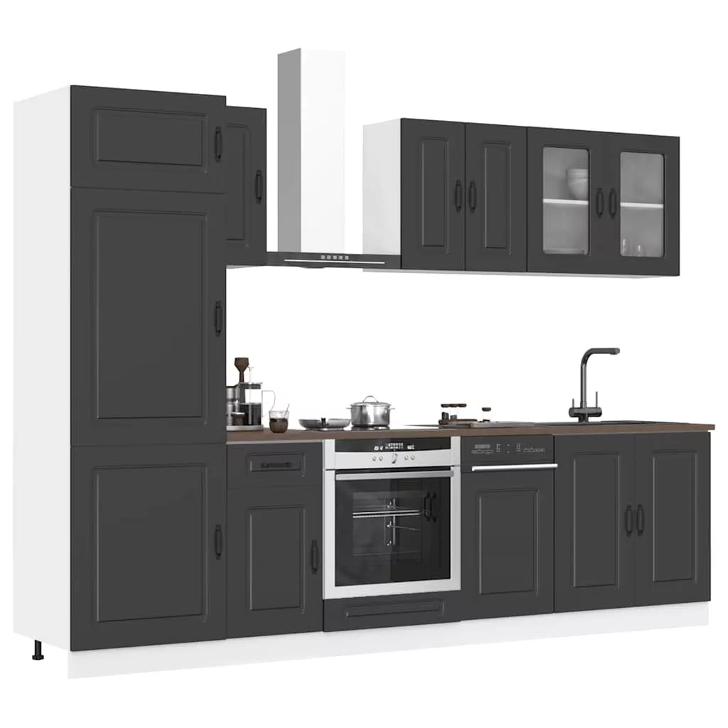 8 darabos konyhaszekrény szett Kalmar fekete színű műfa