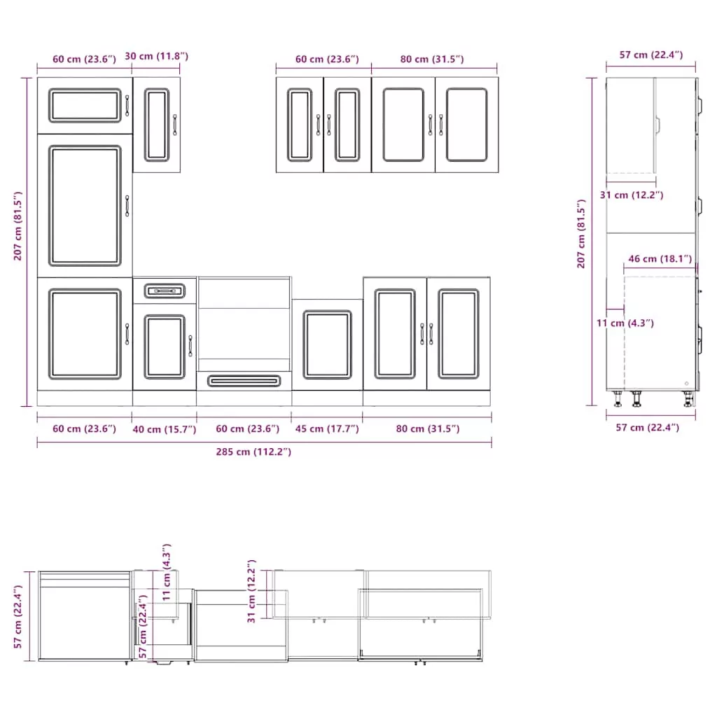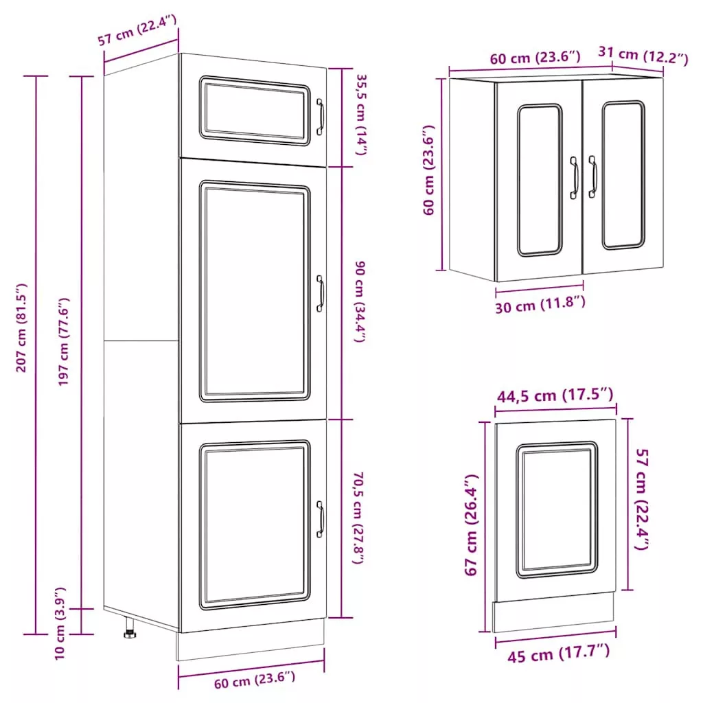 • 1 x konyhaszekrény: 60 x 57 x 207 cm (Sz x M x K)