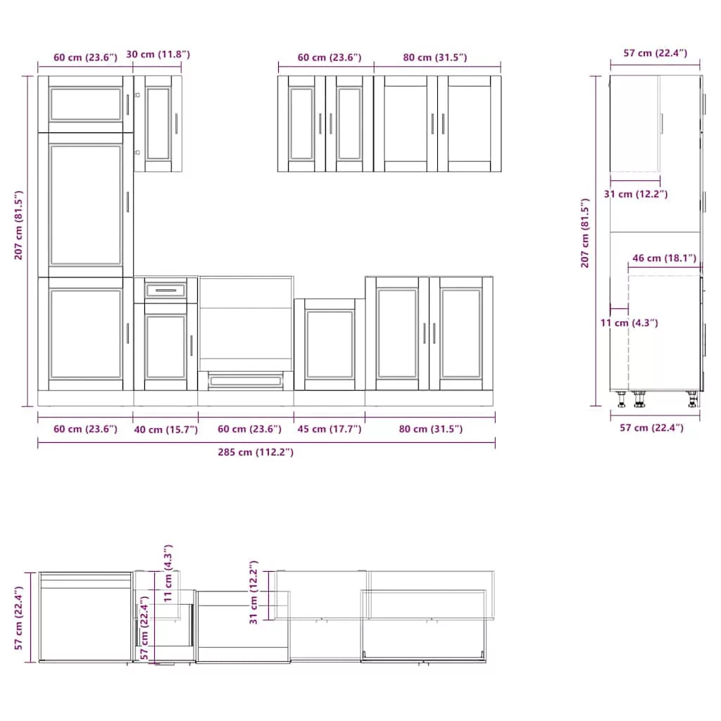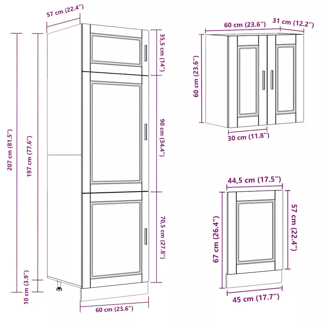 • 1 x konyhaszekrény: 60 x 57 x 207 cm (Sz x M x K)