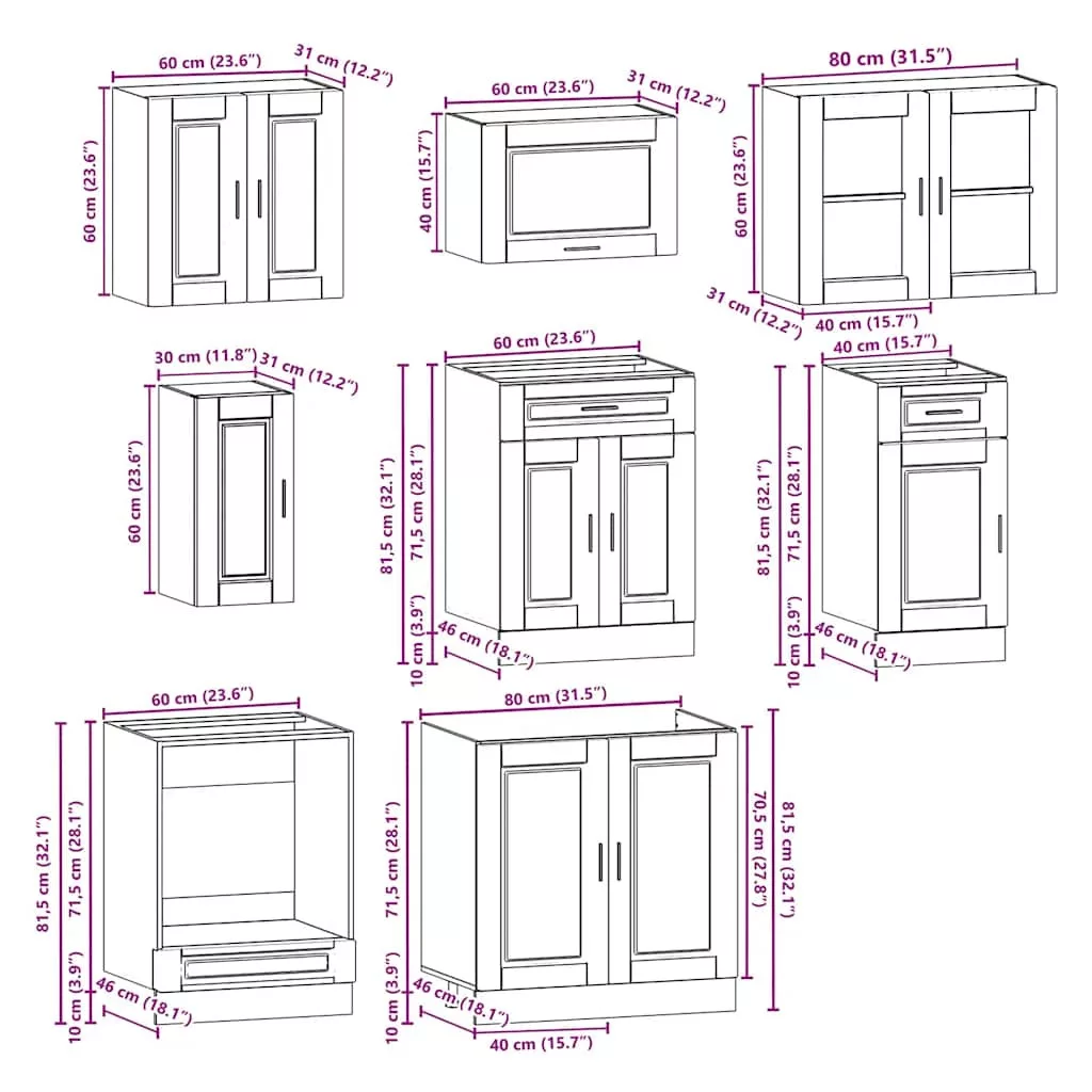 • 1 db szekrény sütőhöz: 60 x 46 x 81,5 cm (Szé x Mé x Ma)