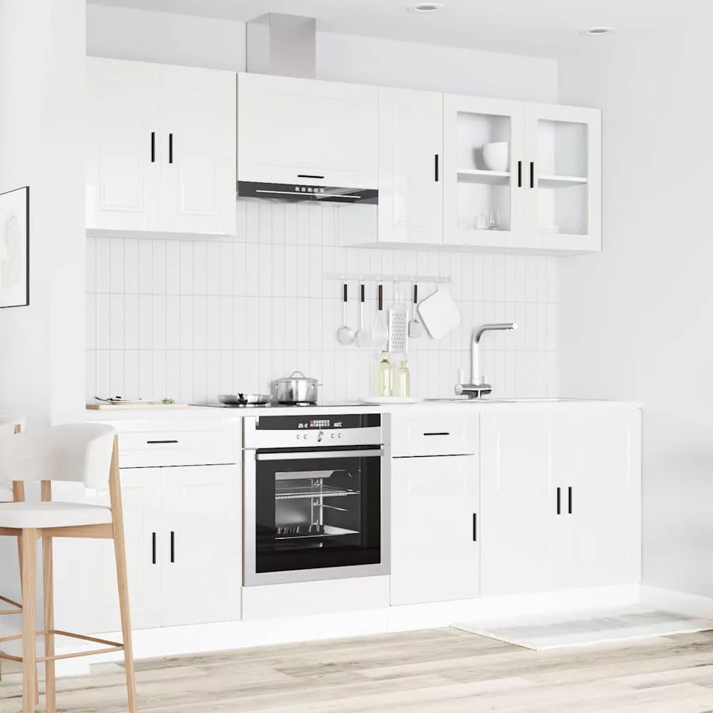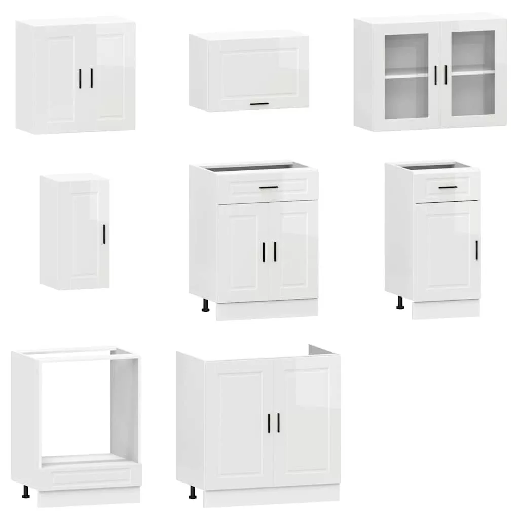 8 részes konyhai szekrény szett Kalmar fényes fehér műfa