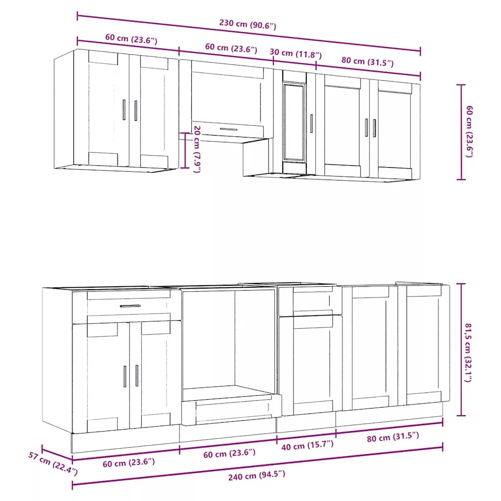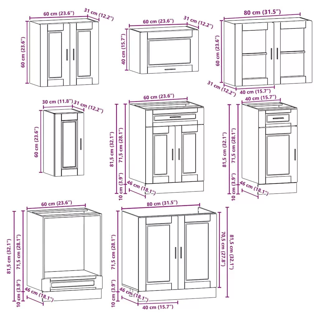 Ez a 8 darabos konyhaszekrény-garnitúra elegáns kialakításával optimalizálja a konyhateret, és bőséges tárolóhelyet biztosít személyes tárgyaidnak! Stabil és tartós anyag: A mesterséges fa tartós és stabil anyag, sima felülettel, amely ellenáll a nedvességnek, a vetemedésnek és a repedésnek, így megbízható választás számos projekthez.Bőséges tárolóhely: A konyhaszekrény-garnitúra számos rekesszel rendelkezik, és elegendő helyet kínál tálak, tányérok, edények és egyéb konyhai eszközök tárolására.Állítható lábak: Az alsó szekrények állítható lábakkal rendelkeznek, amelyek magassága a konyha elrendezéséhez igazítható.Könnyen karbantartható: Sima felületüknek köszönhetően ezek a konyhaszekrények könnyen tisztíthatók nedves ruhával, és kevesebb karbantartást igényelnek. Figyelmeztetés:A terméket munkalap beszerelésével kell rögzíteni. Jó Tudnivalók:A falon belüli csavar(ok) és tipli(k) nem tartozék(ok). Keressen és használjon a falához megfelelő csavar(oka)t és tipli(k)at. Ha bizonytalan, kérjen szakember tanácsát. Olvassa el és kövesse figyelmesen az utasítás minden lépését.A munkalap, a mosogató és a csaptelep nem része a szállítmánynak.