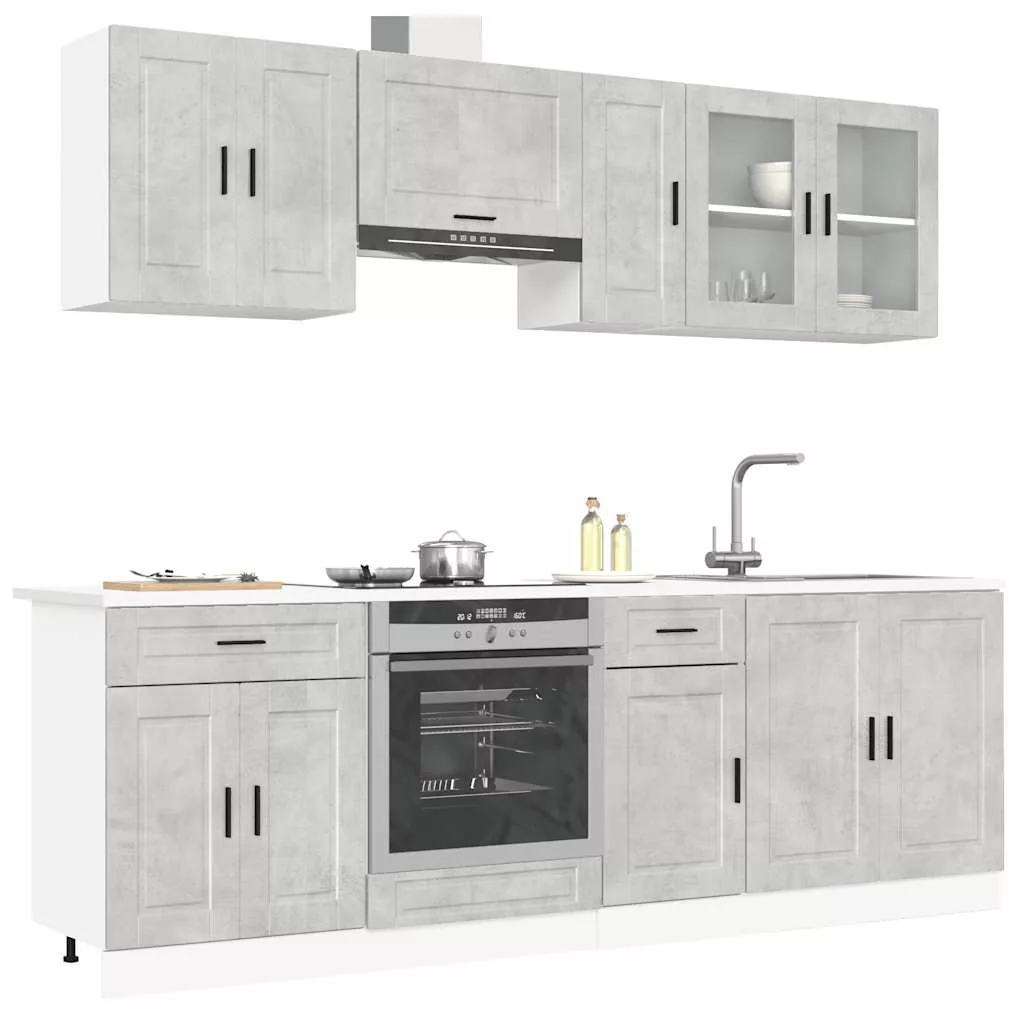 8 részes konyhai szekrény szett Porto betonszürke műszaki fa