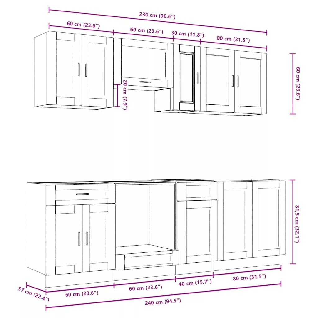 8 részes konyhaszekrény szett Porto füstölt tölgy műszaki fa