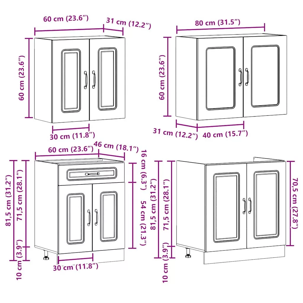 Ez az elegáns kialakítású, négyrészes konyhai szekrénygarnitúra optimalizálja konyhája terét, és bőséges tárolóhelyet biztosít személyes tárgyainak! Stabil és tartós anyag: A szerelt fa tartós és stabil anyag sima felülettel, amely ellenáll a nedvességnek, a vetemedésnek és a hasadásnak, így megbízható választás különféle célokhoz.Bőséges tárolóhely: A konyhaszekrénykészlet számos rekesszel rendelkezik, és elegendő helyet kínál tálak, tányérok, edények és egyéb konyhai eszközök tárolására.Állítható lábak: Az alsó szekrények állítható lábakkal rendelkeznek, amelyek magassága a konyha elrendezésének megfelelően állítható.Könnyen karbantartható: A sima felületnek köszönhetően ezek a konyhaszekrények könnyen tisztíthatók nedves ruhával, és kevesebb karbantartást igényelnek. Figyelem:A felborulás elkerülése érdekében ezt a terméket a mellékelt fali rögzítőeszközzel kell használni. Jó tudni:A falon belüli csavar(ok) és dugó(k) nem alaptartozékok. Keressen és használjon a falának megfelelő csavar(oka)t és dugó(ka)t. Ha bizonytalan, kérje szakember tanácsát. Gondosan olvassa el és kövesse a használati utasítás minden lépését.A munkalap, a mosogató és a csaptelep nem tartozéka a szállításnak.