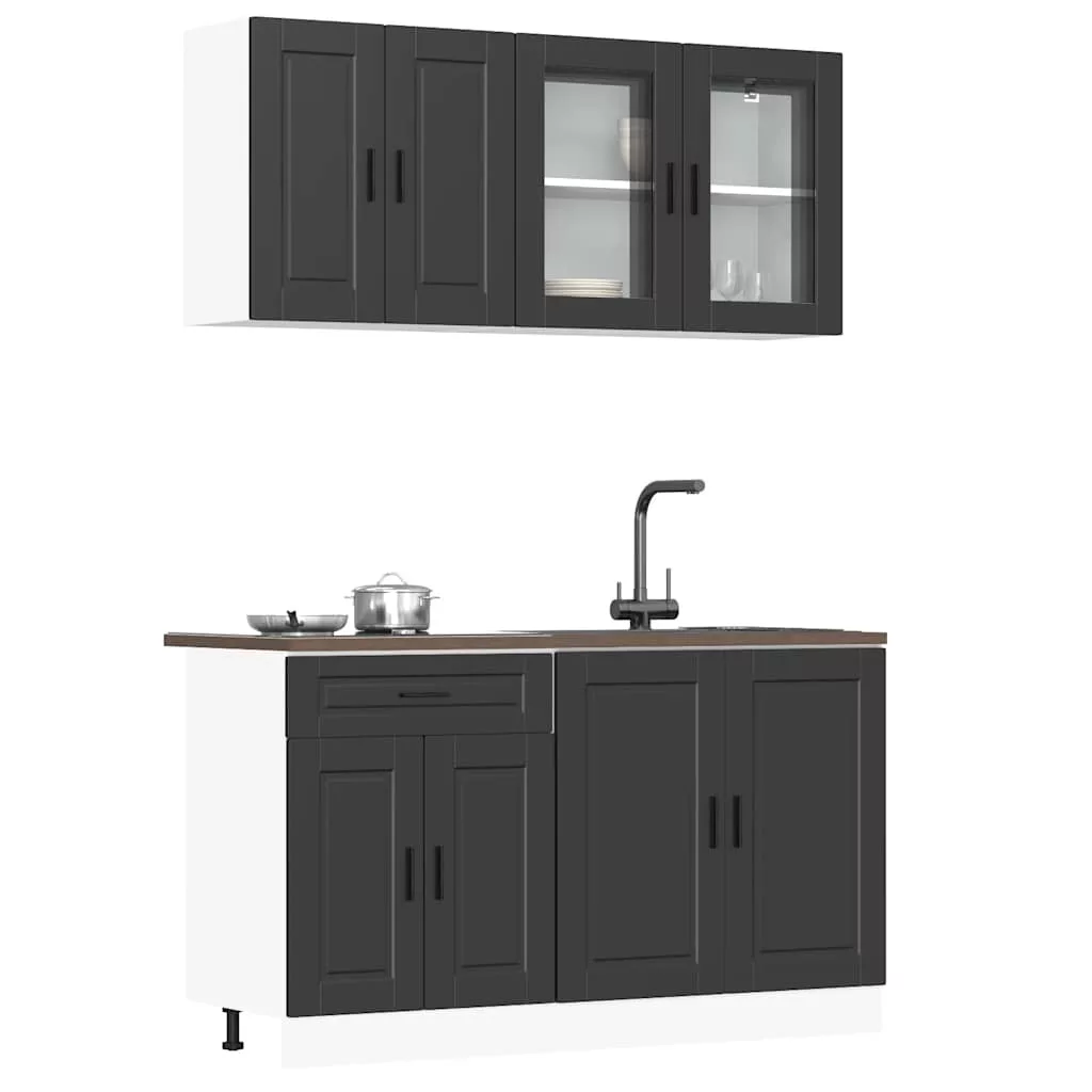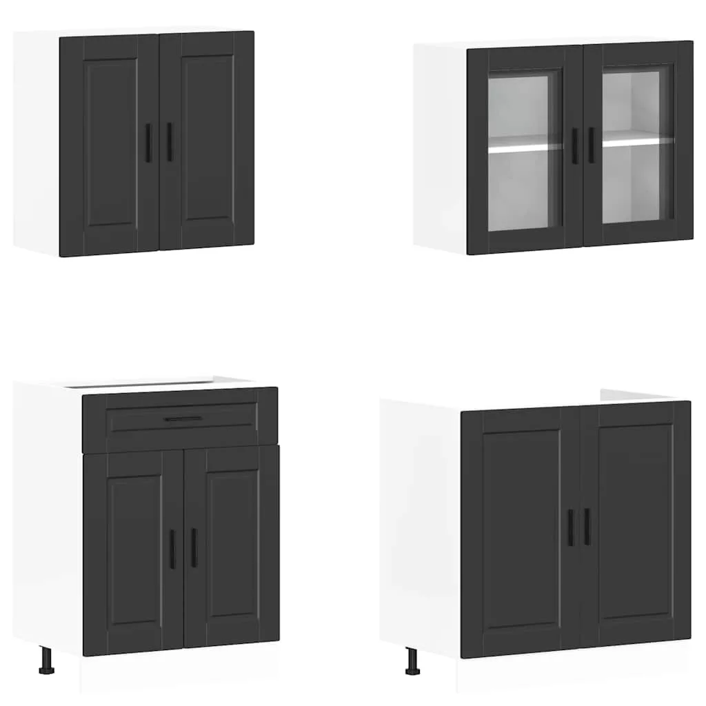 4 darabos konyhaszekrény szett Porto fekete színű műfa