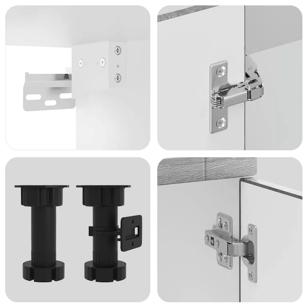 Ez az elegáns kialakítású, négyrészes konyhai szekrénygarnitúra optimalizálja konyhája terét, és bőséges tárolóhelyet biztosít személyes tárgyainak! Stabil és tartós anyag: A szerelt fa tartós és stabil anyag sima felülettel, amely ellenáll a nedvességnek, a vetemedésnek és a hasadásnak, így megbízható választás különféle célokhoz.Bőséges tárolóhely: A konyhaszekrénykészlet számos rekesszel rendelkezik, és elegendő helyet kínál tálak, tányérok, edények és egyéb konyhai eszközök tárolására.Állítható lábak: Az alsó szekrények állítható lábakkal rendelkeznek, amelyek magassága a konyha elrendezésének megfelelően állítható.Könnyen karbantartható: A sima felületnek köszönhetően ezek a konyhaszekrények könnyen tisztíthatók nedves ruhával, és kevesebb karbantartást igényelnek. Figyelem:A felborulás elkerülése érdekében ezt a terméket a mellékelt fali rögzítőeszközzel kell használni. Jó tudni:A falon belüli csavar(ok) és dugó(k) nem alaptartozékok. Keressen és használjon a falának megfelelő csavar(oka)t és dugó(ka)t. Ha bizonytalan, kérje szakember tanácsát. Gondosan olvassa el és kövesse a használati utasítás minden lépését.A munkalap, a mosogató és a csaptelep nem tartozéka a szállításnak.