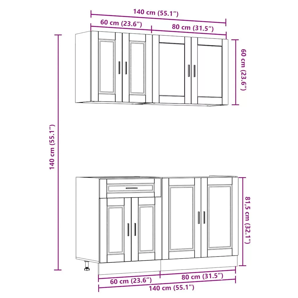 Ez az elegáns kialakítású, négyrészes konyhai szekrénygarnitúra optimalizálja konyhája terét, és bőséges tárolóhelyet biztosít személyes tárgyainak! Stabil és tartós anyag: A szerelt fa tartós és stabil anyag sima felülettel, amely ellenáll a nedvességnek, a vetemedésnek és a hasadásnak, így megbízható választás különféle célokhoz.Bőséges tárolóhely: A konyhaszekrénykészlet számos rekesszel rendelkezik, és elegendő helyet kínál tálak, tányérok, edények és egyéb konyhai eszközök tárolására.Állítható lábak: Az alsó szekrények állítható lábakkal rendelkeznek, amelyek magassága a konyha elrendezésének megfelelően állítható.Könnyen karbantartható: A sima felületnek köszönhetően ezek a konyhaszekrények könnyen tisztíthatók nedves ruhával, és kevesebb karbantartást igényelnek. Figyelem:A felborulás elkerülése érdekében ezt a terméket a mellékelt fali rögzítőeszközzel kell használni. Jó tudni:A falon belüli csavar(ok) és dugó(k) nem alaptartozékok. Keressen és használjon a falának megfelelő csavar(oka)t és dugó(ka)t. Ha bizonytalan, kérje szakember tanácsát. Gondosan olvassa el és kövesse a használati utasítás minden lépését.A munkalap, a mosogató és a csaptelep nem tartozéka a szállításnak.