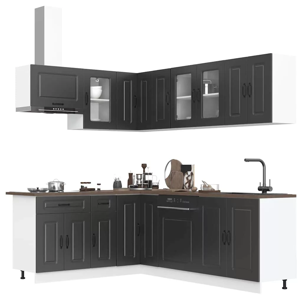 11 darabos konyhaszekrény szett Kalmar fekete színű műfa