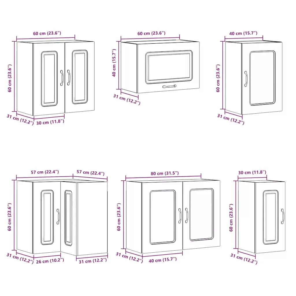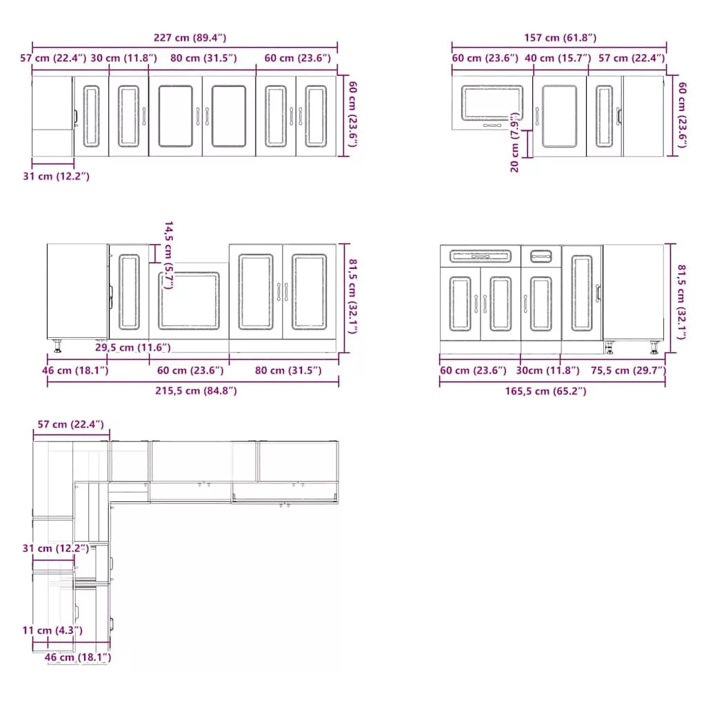 Ez az elegáns kialakítású, tizenegy részes konyhai szekrénygarnitúra optimalizálja konyhája terét, és bőséges tárolóhelyet biztosít személyes tárgyainak! Stabil és tartós anyag: A szerelt fa tartós és stabil anyag sima felülettel, amely ellenáll a nedvességnek, a vetemedésnek és a hasadásnak, így megbízható választás különféle célokhoz.Bőséges tárolóhely: A konyhaszekrénykészlet számos rekesszel rendelkezik, és elegendő helyet kínál tálak, tányérok, edények és egyéb konyhai eszközök tárolására.Állítható lábak: Az alsó szekrények állítható lábakkal rendelkeznek, amelyek magassága a konyha elrendezésének megfelelően állítható.Könnyen karbantartható: A sima felületnek köszönhetően ezek a konyhaszekrények könnyen tisztíthatók nedves ruhával, és kevesebb karbantartást igényelnek. Figyelem:A felborulás elkerülése érdekében ezt a terméket a mellékelt fali rögzítőeszközzel kell használni. Jó tudni:A falon belüli csavar(ok) és dugó(k) nem alaptartozékok. Keressen és használjon a falának megfelelő csavar(oka)t és dugó(ka)t. Ha bizonytalan, kérje szakember tanácsát. Gondosan olvassa el és kövesse a használati utasítás minden lépését.A munkalap, a mosogató és a csaptelep nem tartozéka a szállításnak.