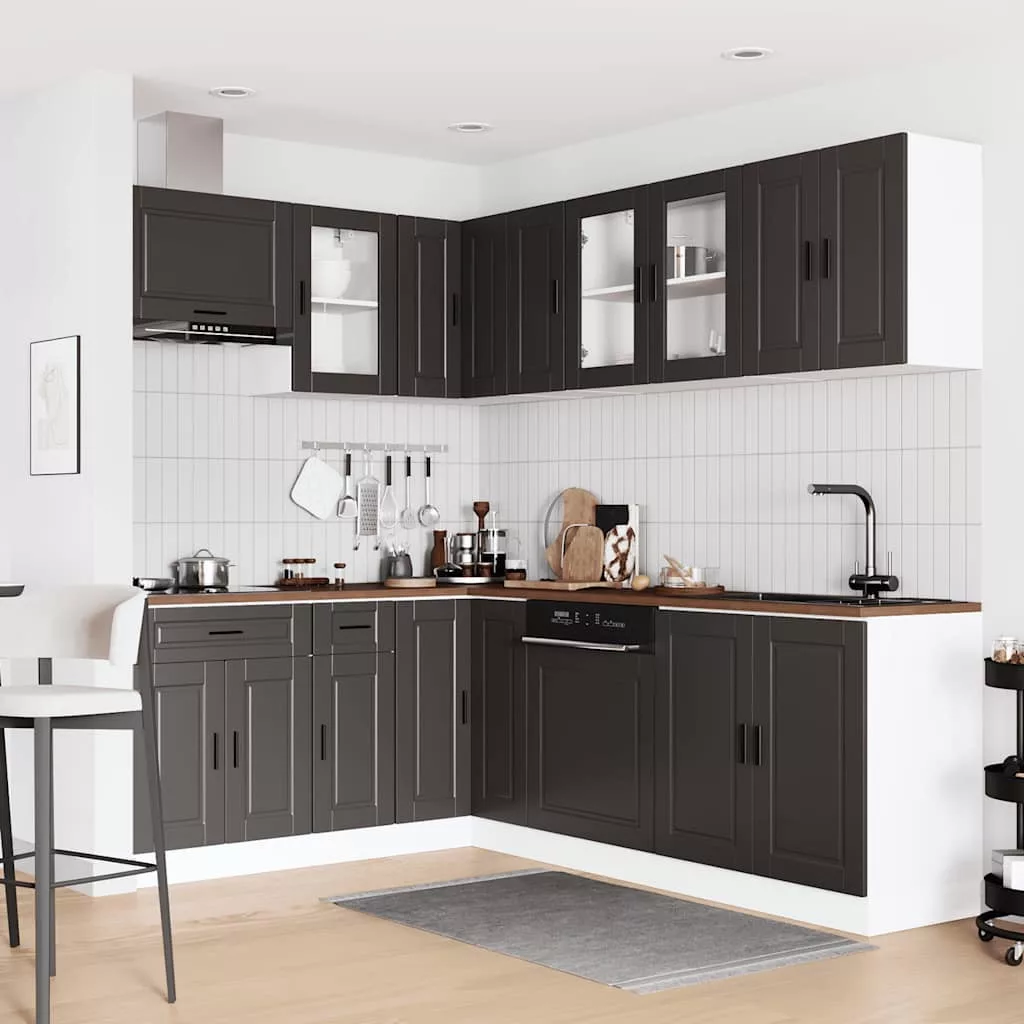 11 darabos konyhaszekrény szett Porto fekete színű műfa