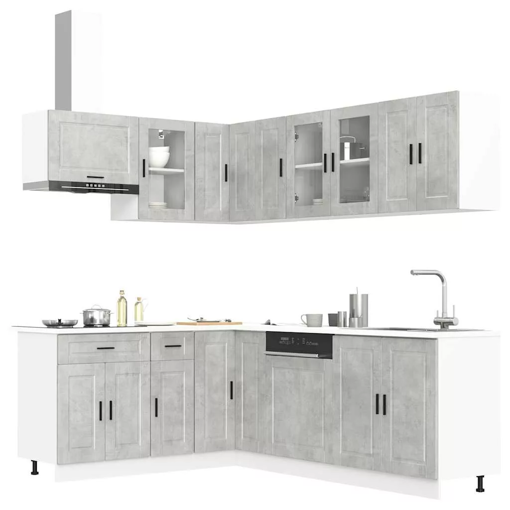 11 részes konyhai szekrény szett Porto betonszürke műszaki fa